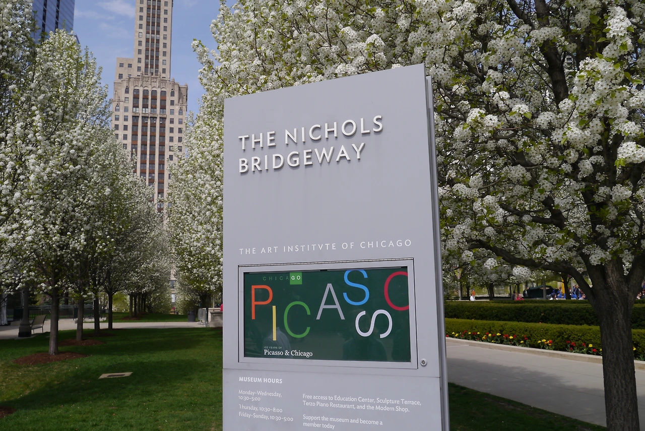 밀레니엄 파크에서 THE NICHOLS BRIDGEWAY 안내판을 찾으면 바로 미술관으로 연결되는 브릿지가 있습니다. 브릿지를 건너서 시카고 미술관 신관으로 연결이 되는데 근대 건축물과 현대 건축물의 멋진 모습을 볼 수가 있습니다.