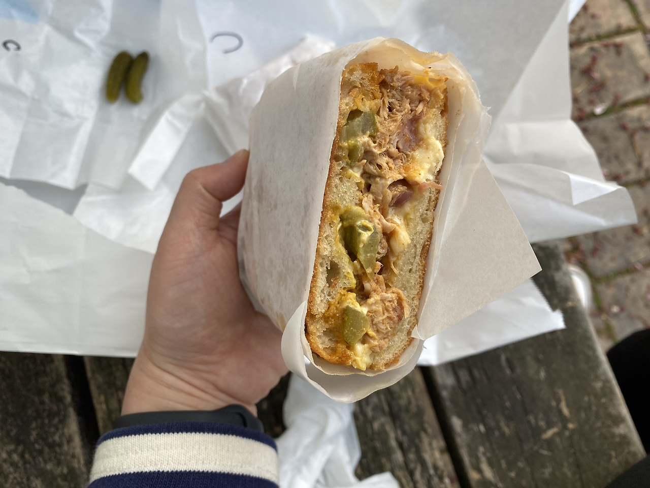 물론 쿠바나 미국에 직접 가서 먹는 게 제일 맛있겠지만, 에이치 샌드위치의 쿠바 샌드위치도 정말 맛있었다. 직접 만든 햄과 풀드포크가 살짝 구운 샌드위치 사이로 흐르는 치즈의 고소한 맛을 만나 단짠고소함을 다 가진 쿠바 샌드위치,