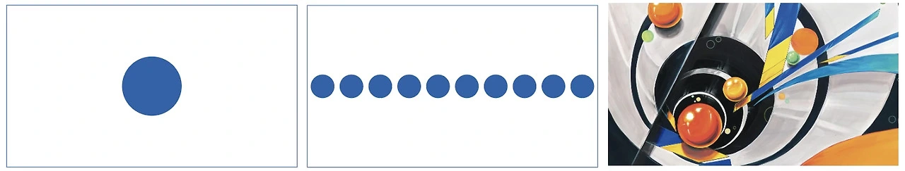 점이 여러 개가 같은 간격으로 나열되면 시선이 이동합니다. 그리고 그림에서는 점의 간격을 조절해서 좁아지는 곳으로 시선을 유도할 수 있습니다.