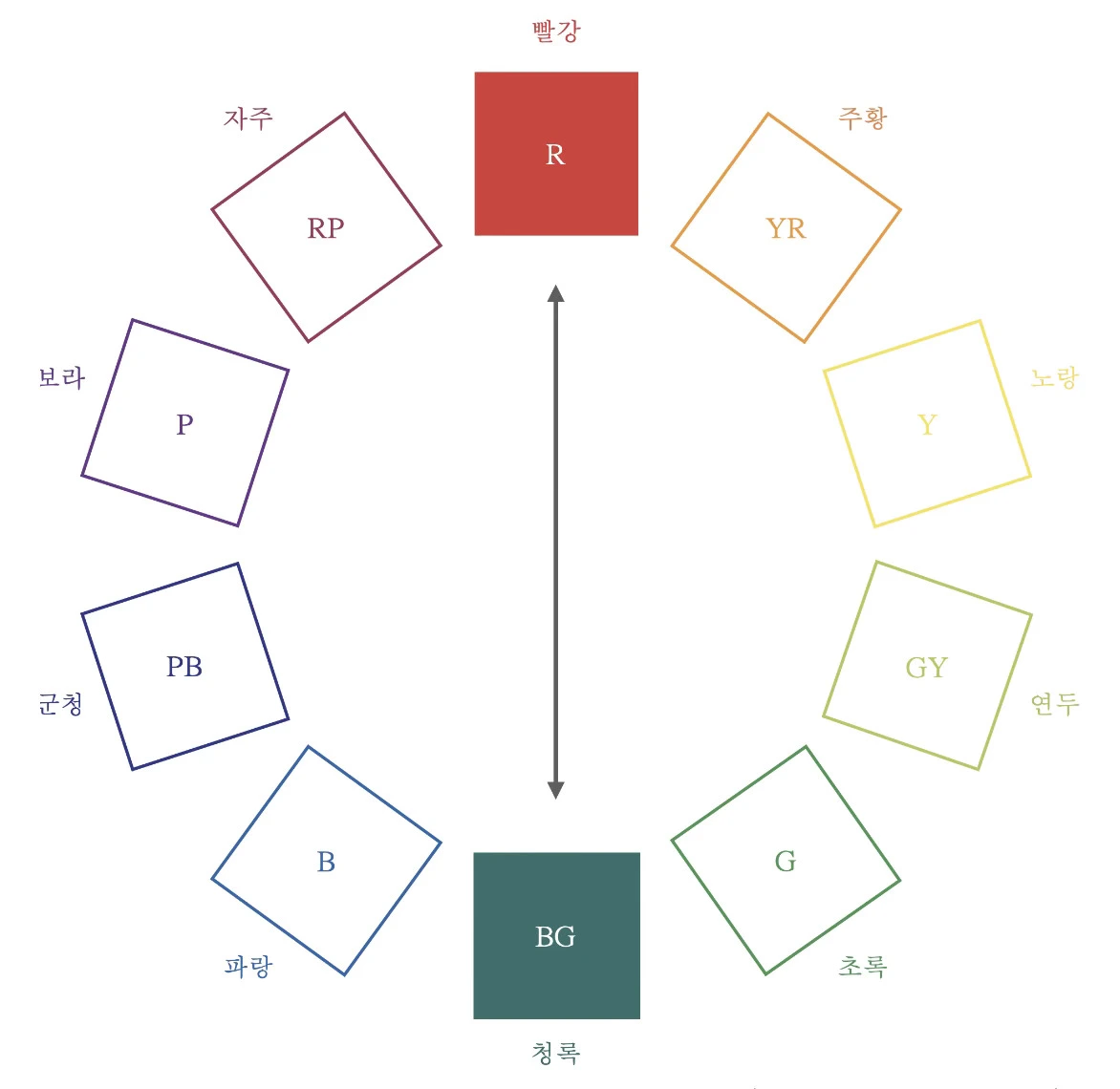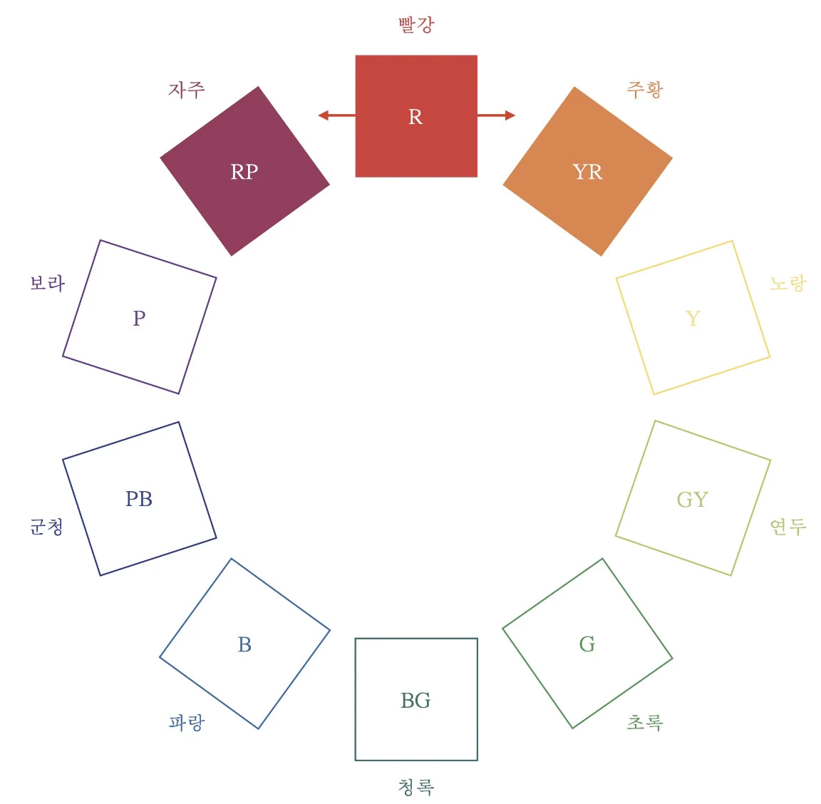 색은 '동계색, 유사색, 보색, 반대색 등'으로 나눌 수 있습니다.