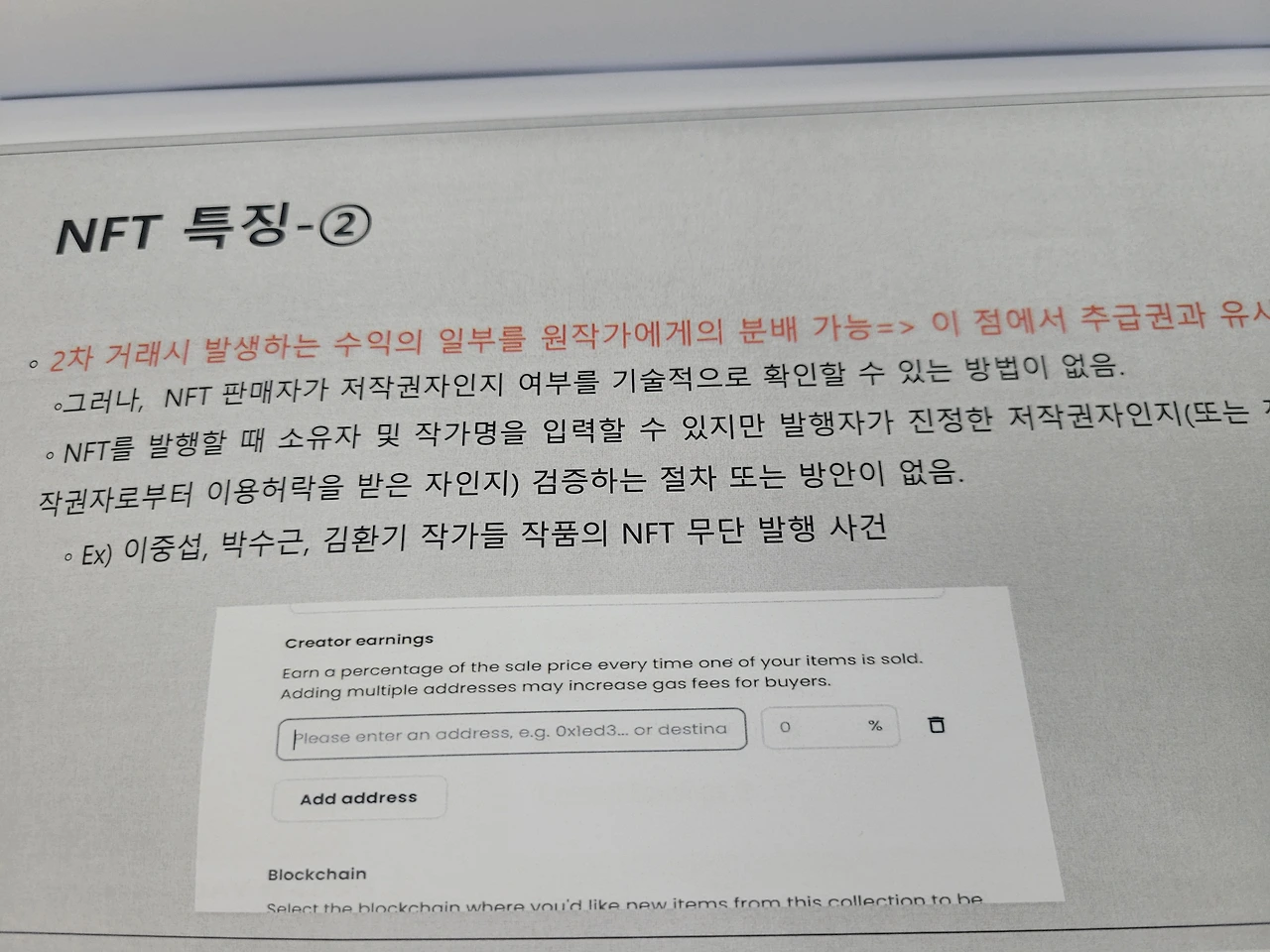 이번에는 nft관련한 저작권이 잇슈였고, <핵심주제중의 하나는 현대미술의 실물 작품도 추급권을 적용하는 것인데, 현대미술품은 2차 3차 판매시 유통경로 추적이 어려워서 추급권 적용이 어렵지만 NFT와 페어링하여 결합시킨 후 블록체인 거래장부를 활용하는식의 판매로 추급권을 적용하는 이슈의 발제와 토론>이었다. 들으면서 두 세가지 생각이 들어졌다.