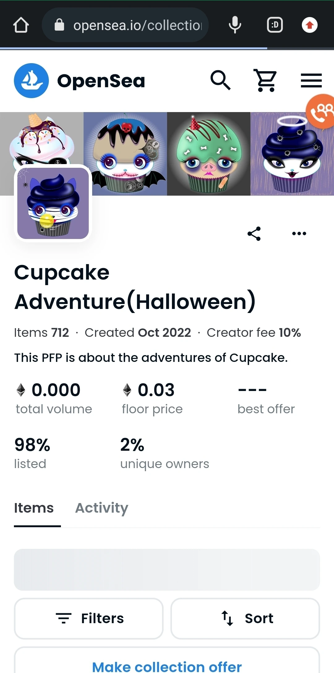 그리고, 저의 두 번째 에어드롭 선물은 좀 더 쉽게 오픈씨 할로윈축제기념 5000개의 컵케익 에어드롭 AI PFP를 발행하신 #프렉탈 아티스트 #박보석 교수님의 작품이었구요