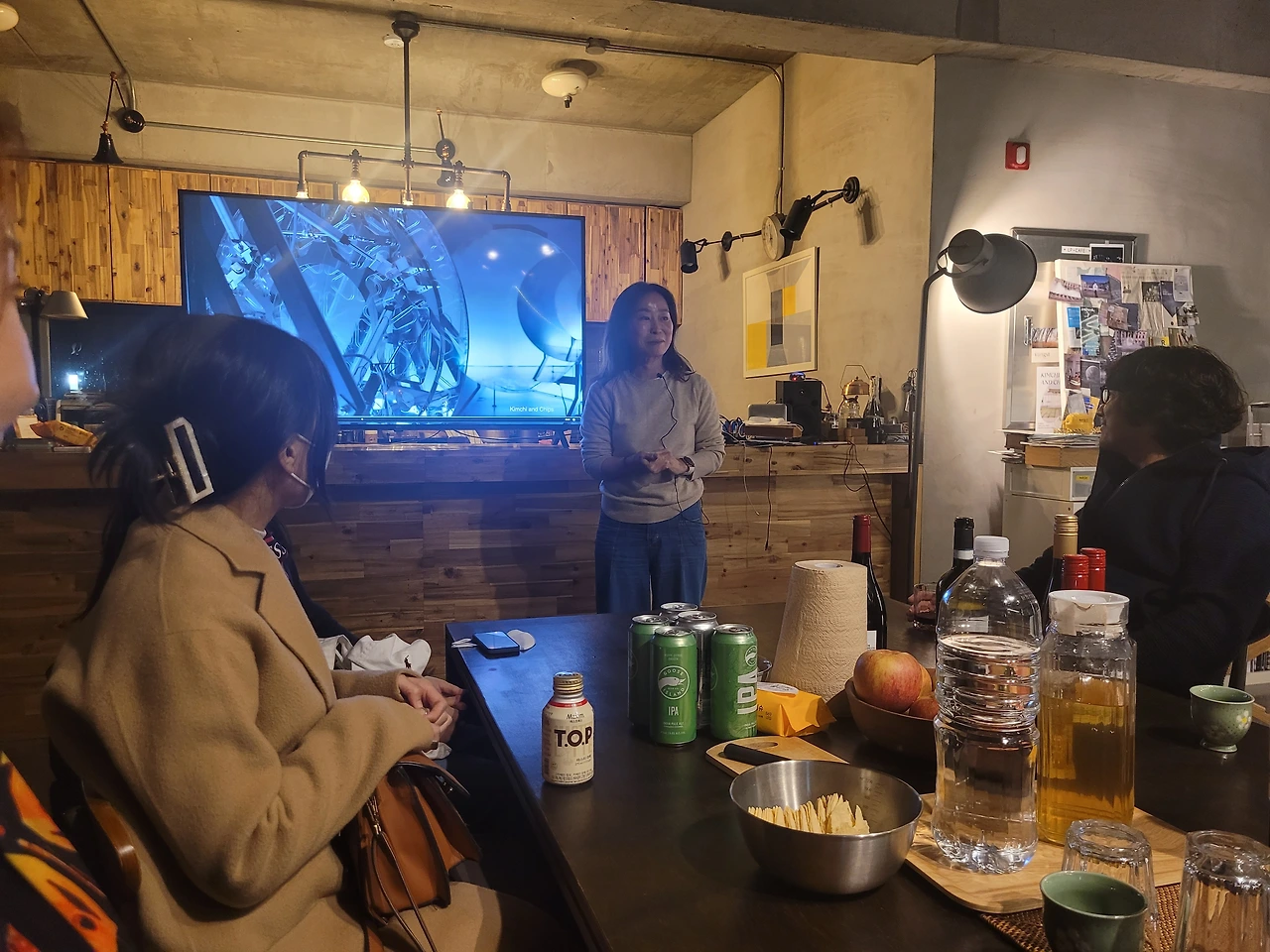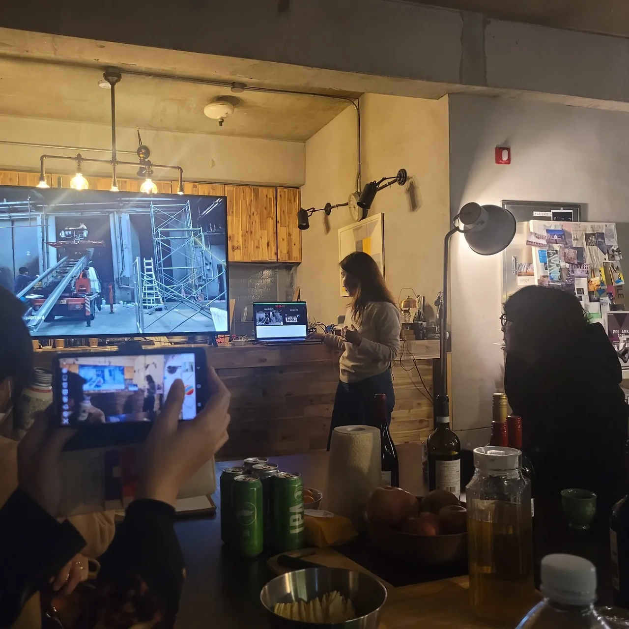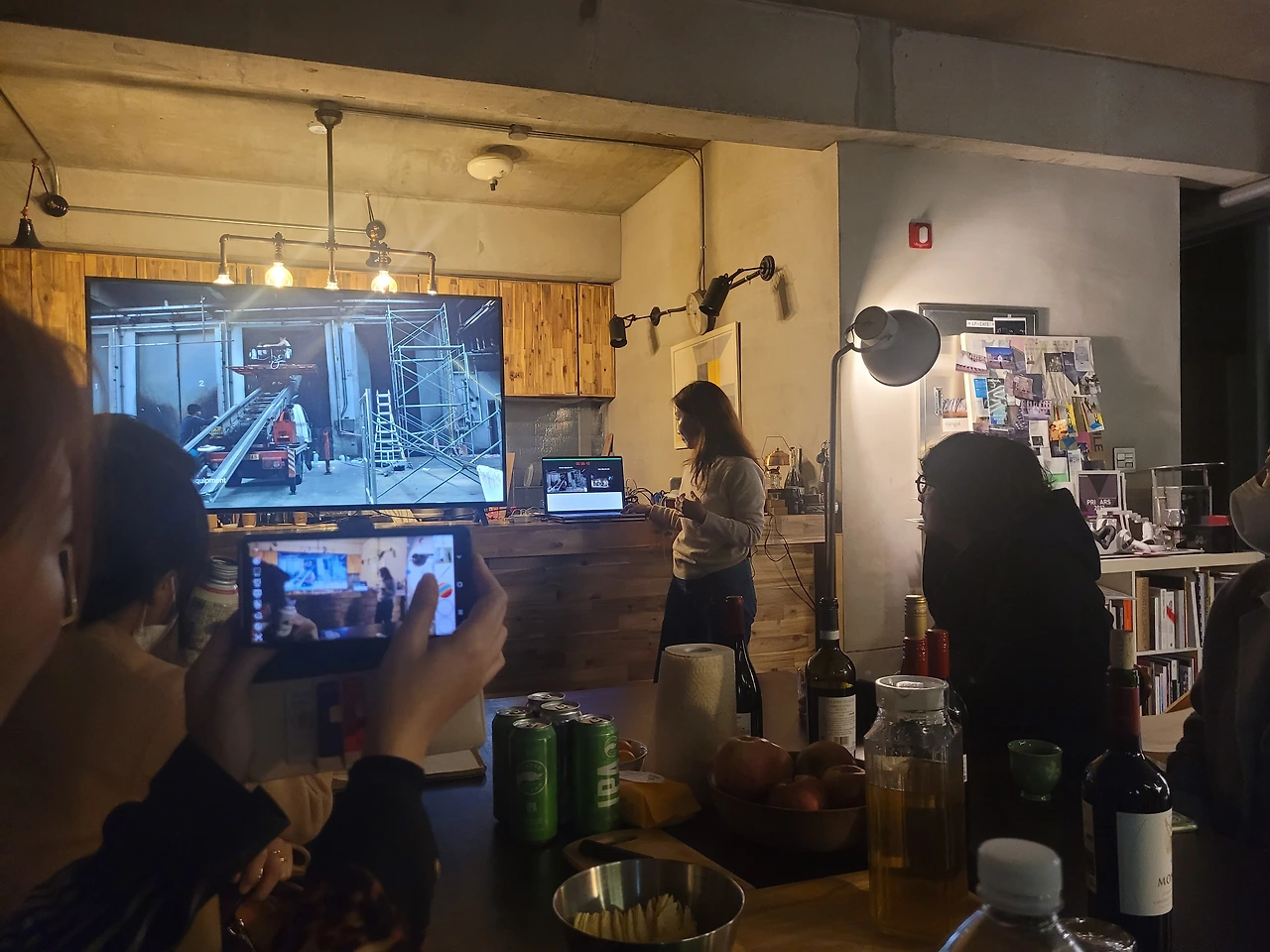 재미진 스튜디오 바프는, 참 좋은 파주 출판단지에 위치해서 작가로서의 꿈을 키우고 영감을 받아가기 좋은 공간이었다. 감각을 엿볼 수 있었고, 작가의 세계관이 돋보이는 곳에 초대받아 한참 즐거운 금요일이었다. 특히나 가까이 김치앤칩스의 british counsil지원금 요청등 국내외의 국가기금과 원조등의 예산등을 칩행하면서 불가능한 일들을 가능케 했던 하늘에 달을 띄우고 공중에 태양을 띄우는 일들에 대한 도전이야기를 듣는동안 압도되는 감정을 느끼기도 했다! 참으로 쉽지않은 순간들을 보내면서 여기까지 달려오셨구나. 멋지다...싶은장면이다