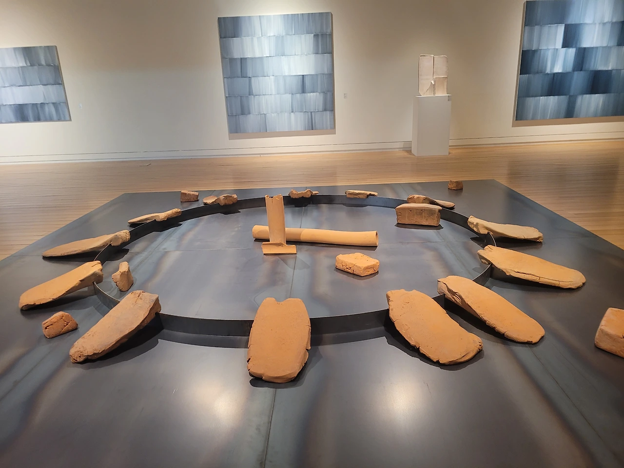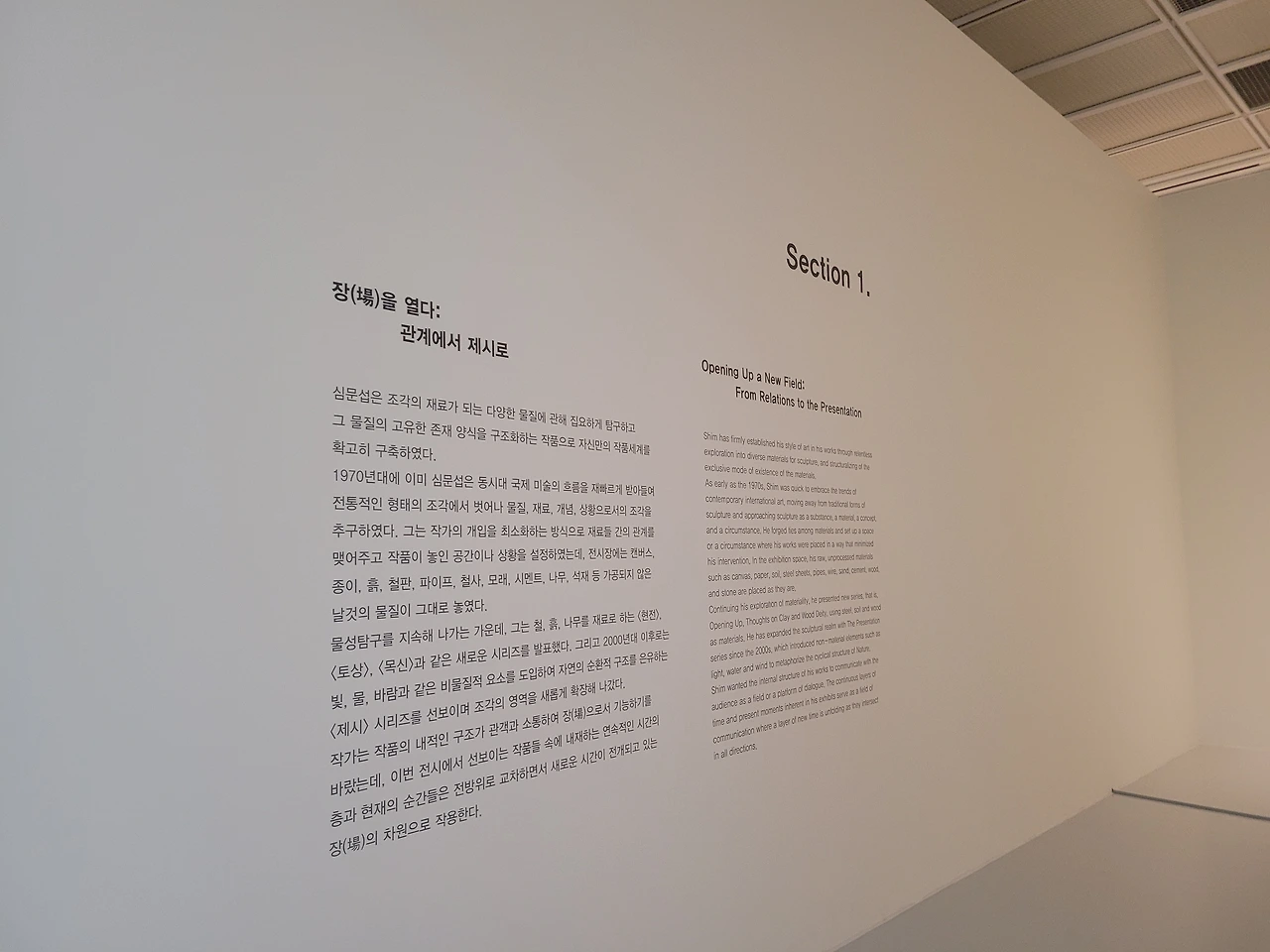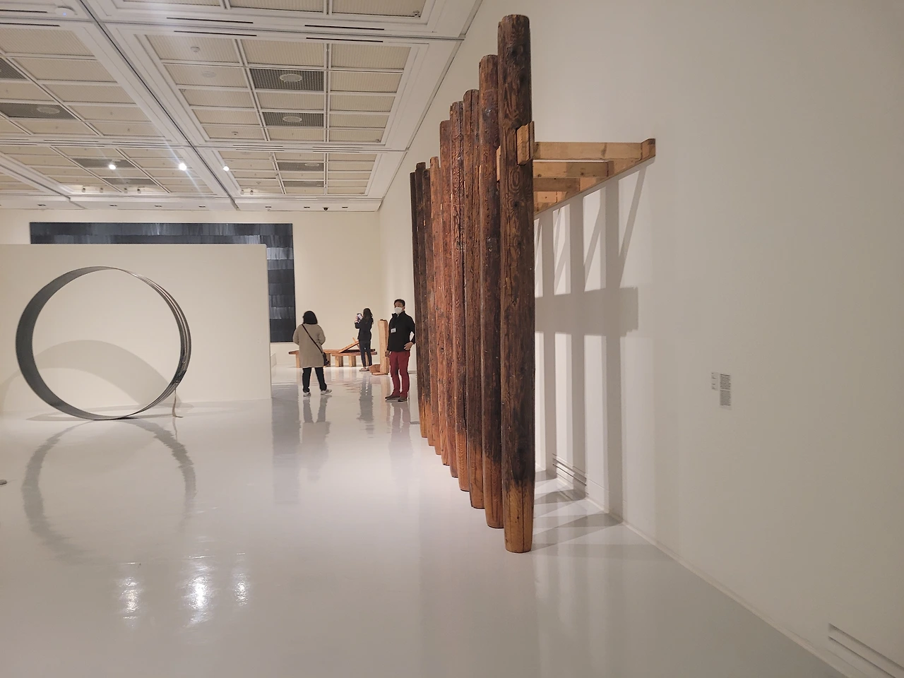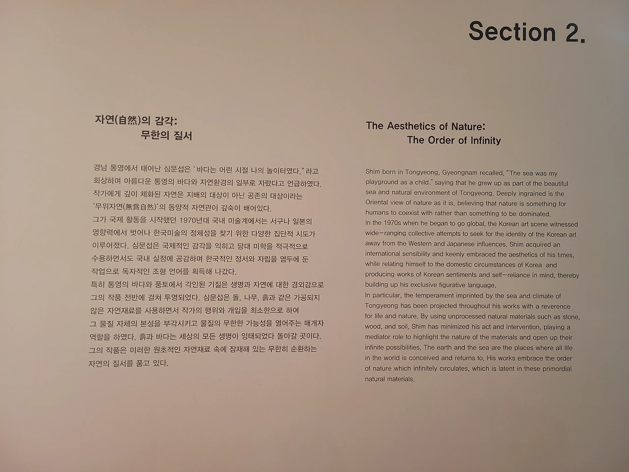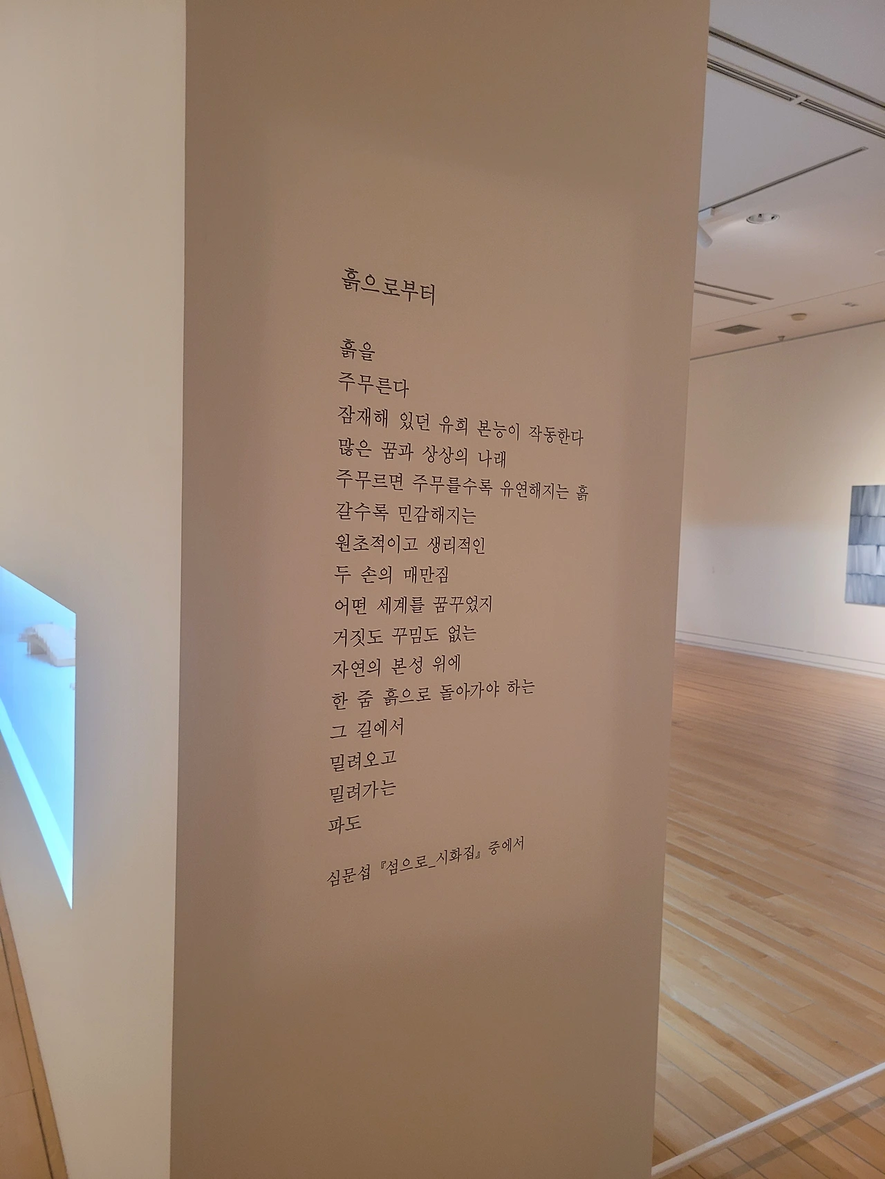 작품 하나하나 물성을 느낄 수 있도록, 나무, 흙, 쇠, 그리고 그 각각의 느낌을 색으로 모양으로 그리고 보여지는것들을 조금 초월한 물성 그 자체를 사색할 수 있는 모노톤의 전시였다. 일반인에게는 다소 어렵게 보여질 수도 있는 모노화, 단색화, 모노크롬, 숭고의미학, 그런것들이 요즘처럼 복잡한 시대에 약간 돌을 살짝 만져보는 느낌으로, 자연에서 자연의 공기와 감각을 느껴보는 힐링이 필요한 역할을 전시장에서 해주고 있는 느낌이었다.