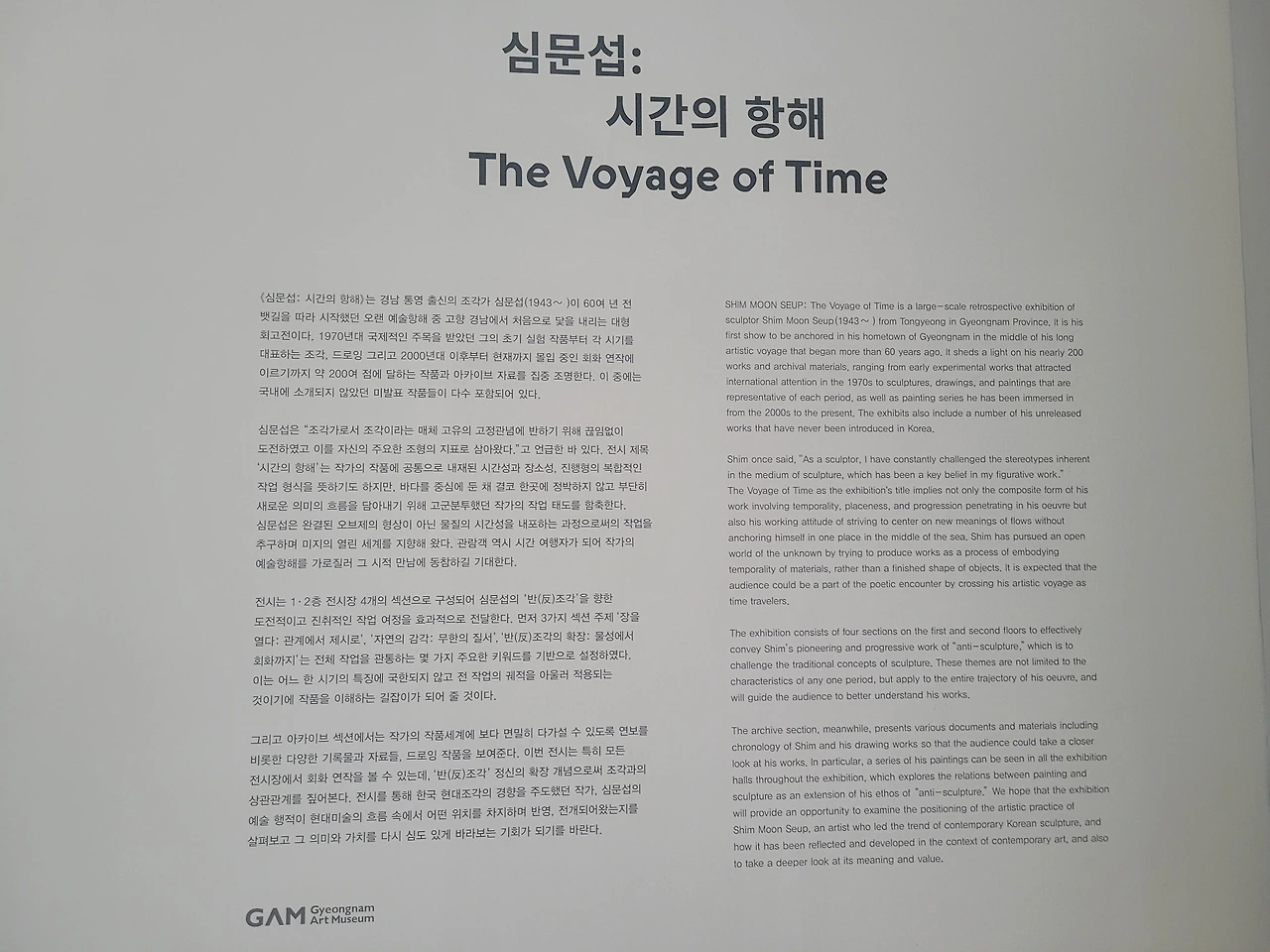 창원에가면 경남도립미술관을 볼 수 있다. 널찍하고, 탄탄한 뮤지움에서 심문섭 작가 개인전과 느리게 춤추라! 단체전을 볼 수 있었다. 돌아오는길 세종시에 들러 글로리의 촬영지도 돌아 볼 수 있었다. 창원의 심문섭 개인전은, 통영출신의 한국을 대표할만한 작가 1인이 걸어온 전 인생을 볼 수 있는 귀한 전시였다.