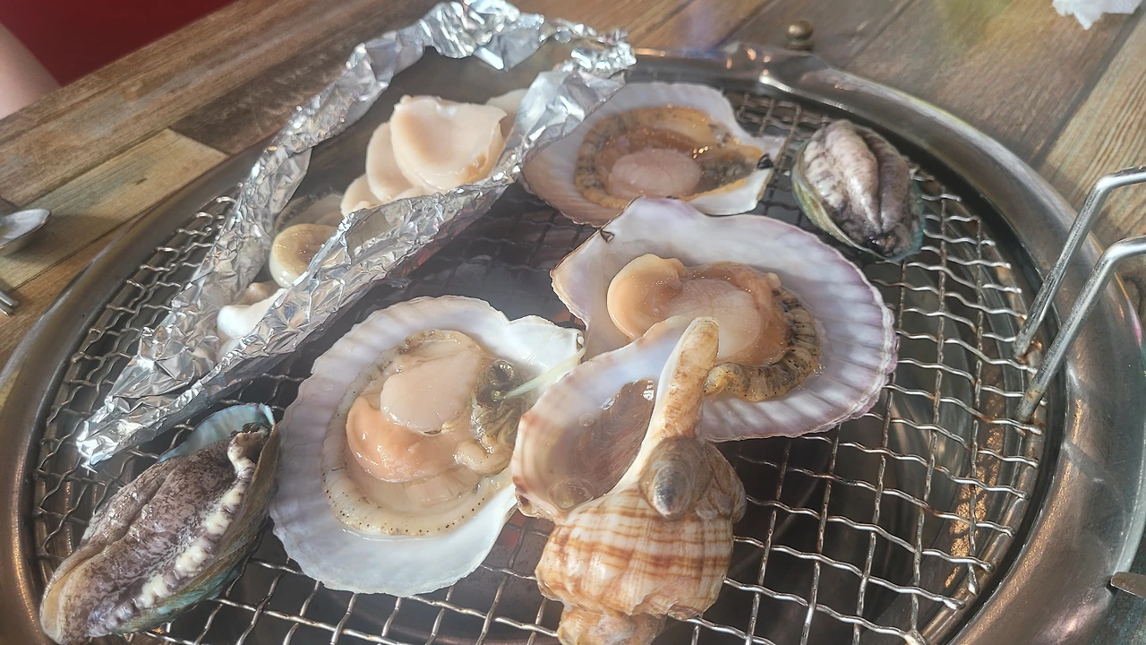 잊지못할 맛인 조개구이 살아있는 전복들을 도시에서는 흔히 보지 못했는데