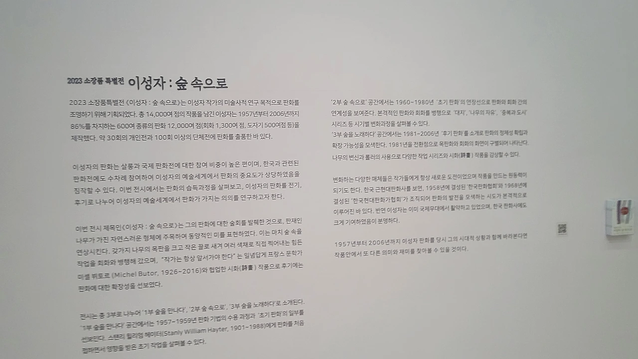 이제 곧 철수될 전시 이성자미술관의 "숲속으로" 16일 마지막이 될 사진들을 모아본다.