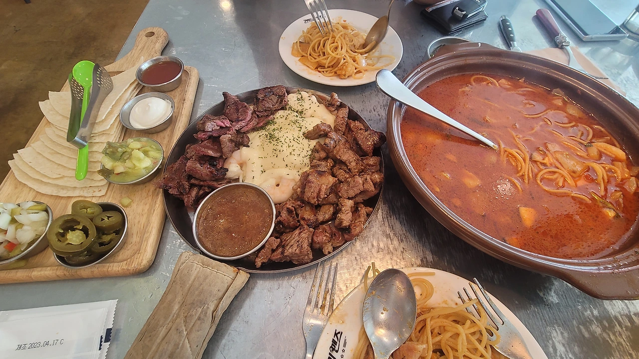 산청의 빗소리, 밥, 고기, 그리고 맛없어도 이쁜 어느 레스토랑에서, 그리고 화목해진 사무실 환경에서,