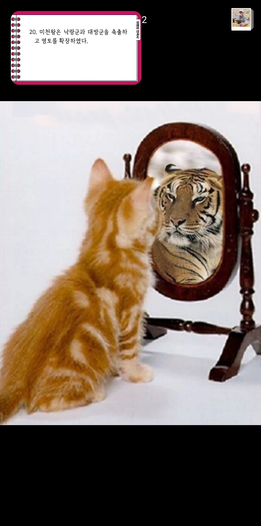 고양이가 거울을 쳐다보니 호랑이라서 깜짝 놀란 모습을 저장해봤다.