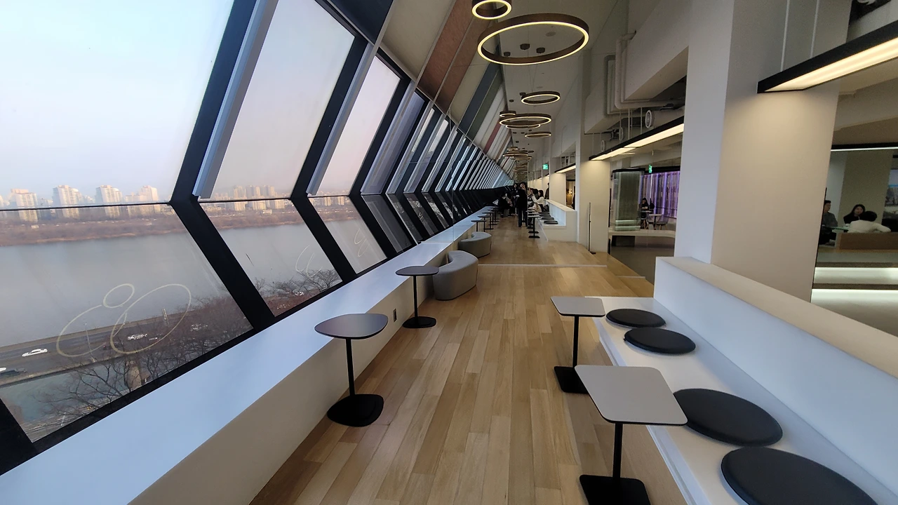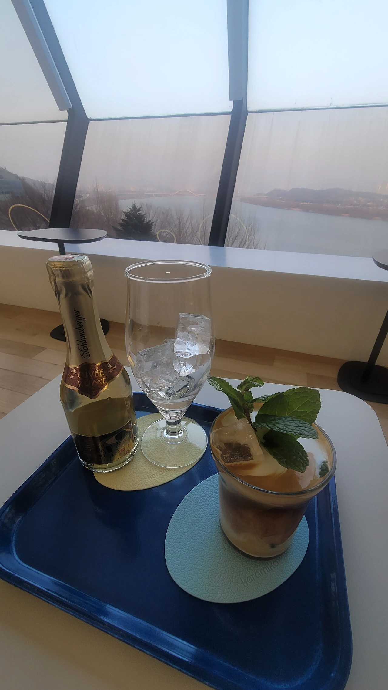 2만원과 주차비 6000원으로 빛의 떼아뜨르! 워커힐 한강뷰 커피맛집은 잔뜩 웅크려진 일상의 사람들에게도 꽤나 럭셔리한 기분전환과 맘껏 펼쳐진 도시 전경을 즐길 수 있었다.