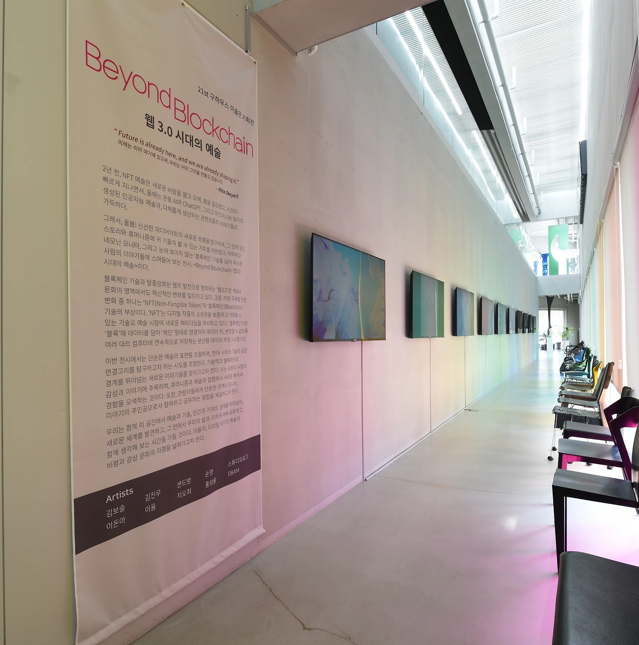 미디어아트의 새로운 흐름을 탐구하며, 그 안에 담긴 스토리와 휴머니즘에 귀 기울여 볼 수 있는 기회를 마련했다. 딱딱하고 네모난 모니터, 그리고 눈에 보이지 않는 ‘블록체인’ 기술을 넘어 따스한 사람의 이야기들에 스며들어 보는 전시, <Beyond Blockchain: 웹3.0 시대의 예술>이다.