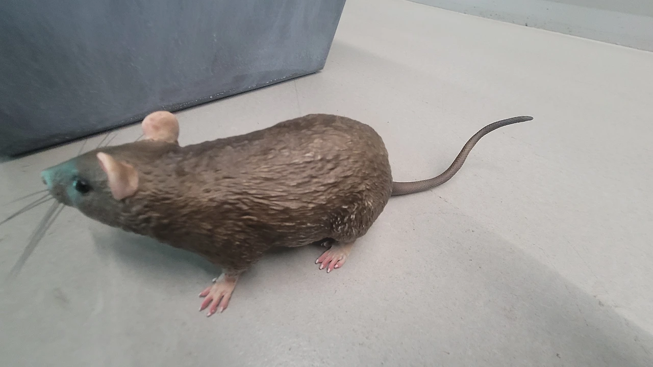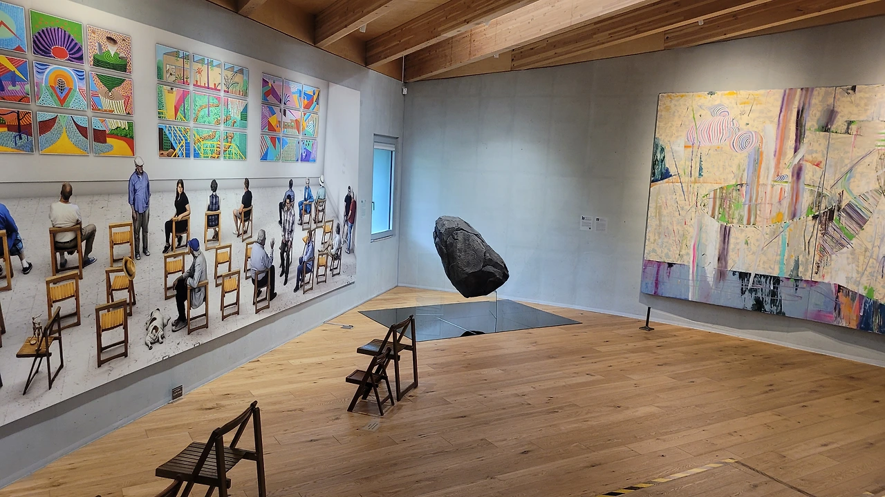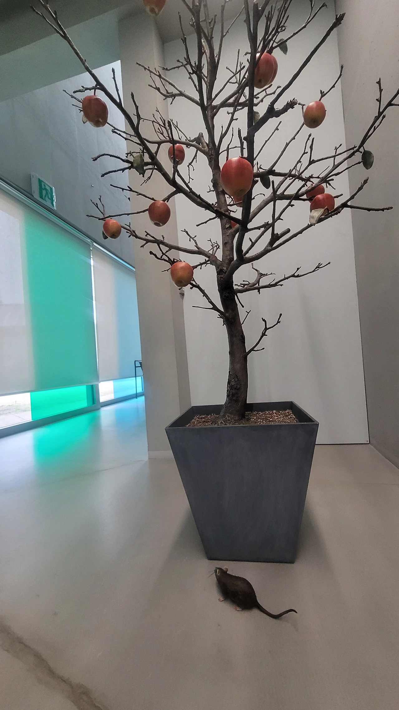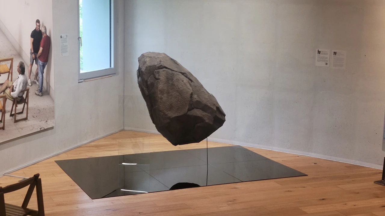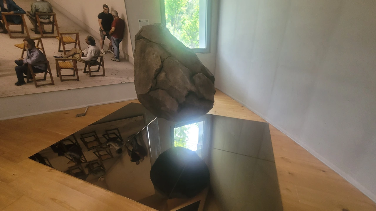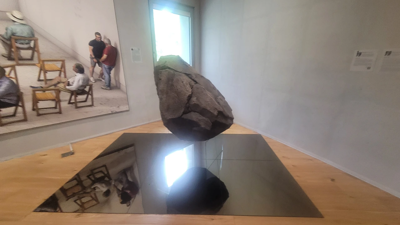 미술관에 대형 돌!덩어리가 유리에 꽂혀 들어 왔으며! 놀랍도록 소름돋게 리얼한 쥐ciki 한마리도 들어왔다!