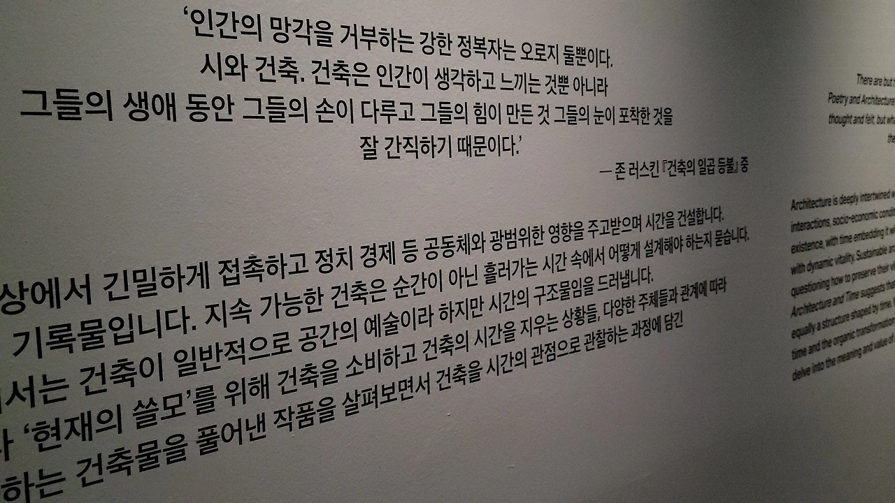 이번 전시는 《시공時空 시나리오》로 건축가가 참여하지 않는 건축 전시인 동시에, 미술관에 내재된 시간과 공간에 대한 이야기 라고 한다. 서도호의 3채널 미공개 영상작품,구동희, 박기원, 배종헌, 김도균, 김민애, 신진작가 이희준, 김예슬, 윤현학, 디자이너 그룹 오디너리피플, 포스트 스탠다드 등 12명(팀)의 작가가 참여하여 12점의 신작들을 볼 수 있었다. 시공時空 시나리오라고 하니, #선시초 가 떠오른다. 시간! 때에 맞는 삶의 자세와 철학을 이야기하는 때를 아는자! 때를 깨닫는자! 알아차리는 자! 일어서야할 때를 아는자! 감사해야하는 때. 그게 지금이다.