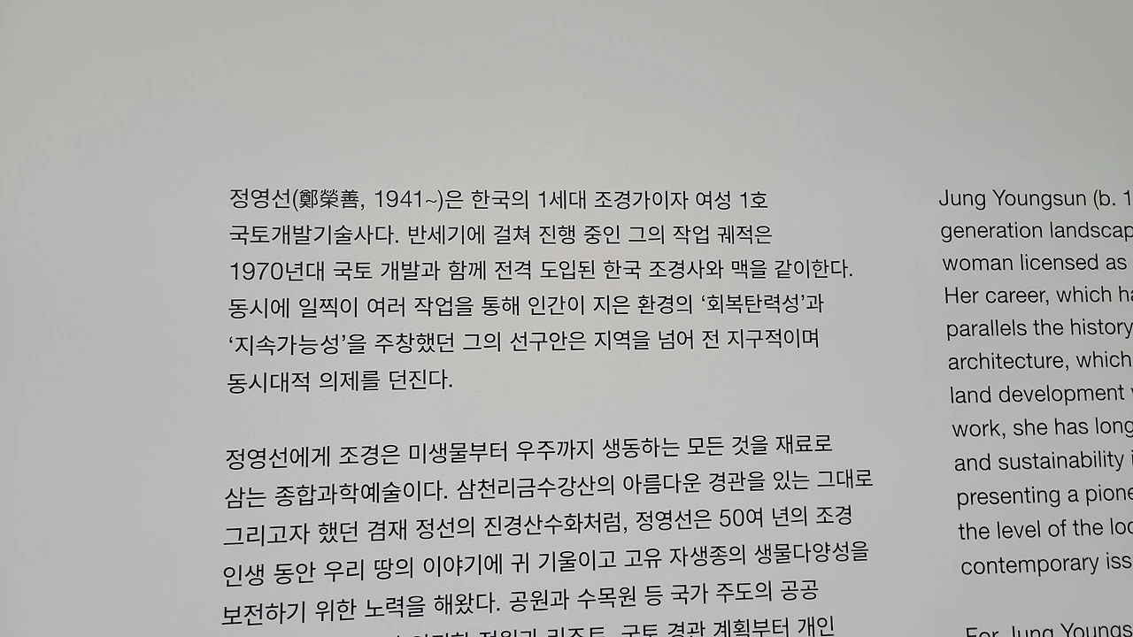 "조경은 예쁜 화장이 아니다. 그 공간, 자연과 사람에 대한 근본적인 이해를 바탕으로 하는 작업이다." - 정영선
