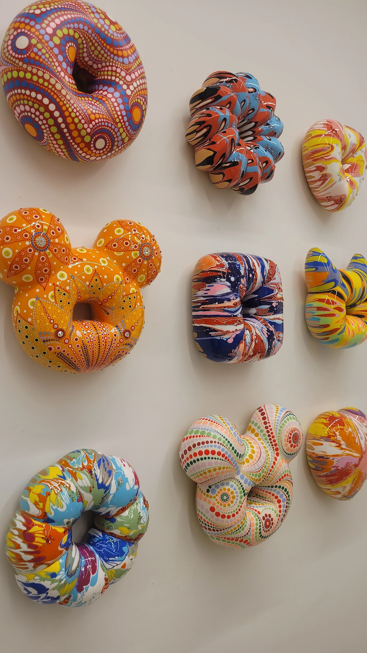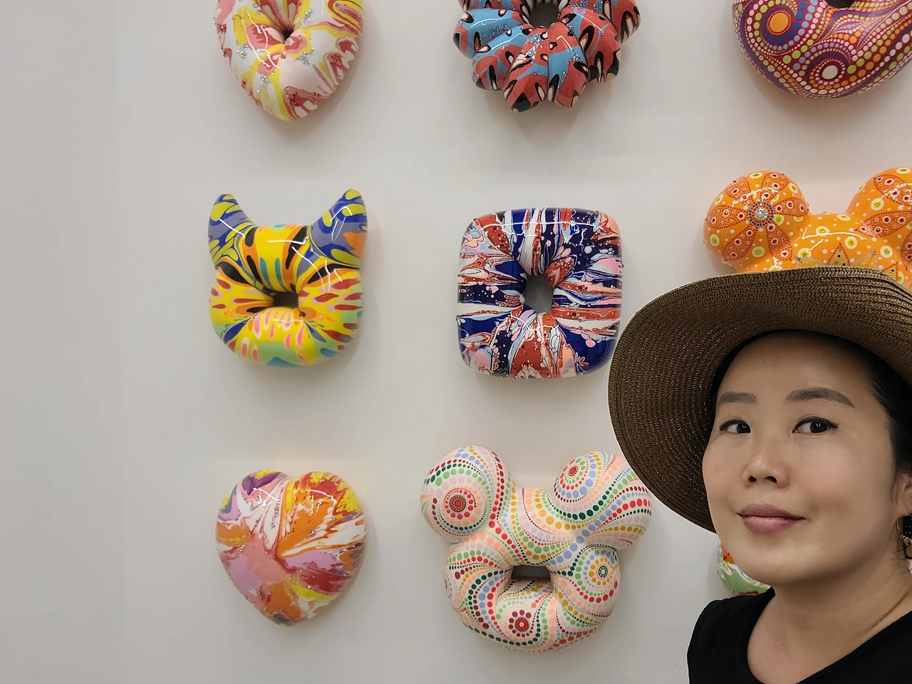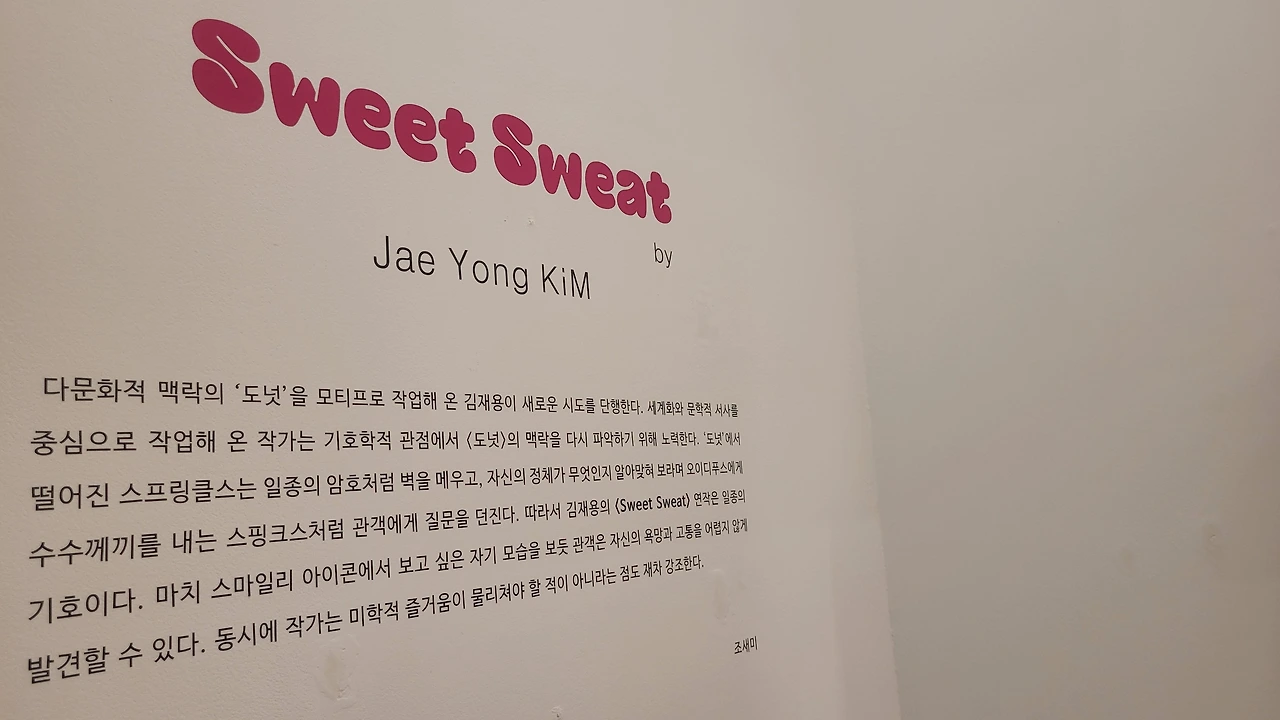 학고재는 갤러리와 아트센터 두군데로 나뉘는데, 8월에 곧 #구하우스에서 열릴 #로와정 전시가 흥미로왔다.. 시간의 개념과 물질들의 특성에 대해 생각해봤고, 그 뒷편 #김재용 작가의 작품은 언젠가 내가 여유가나면 같이 아트페어 나가고싶은 작품이었다! 보고 있으면 경쾌하고, 상냥하고, 친절해 보이는 이 작품은 어떻든 그 곳 공기를 명랑하게 만들어 주어서 좋았다. 누구나 도넛츠를 보고 기분 나빠할 사람은 없으니까! 지금 시대에 더욱더 사람들이 달콤한 빵과 커피에 목을 매는 이유에 회답을 해주는 전시 같았다.