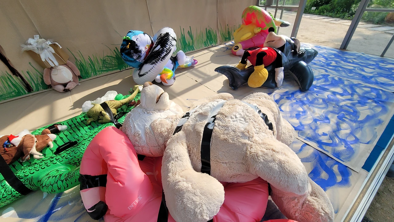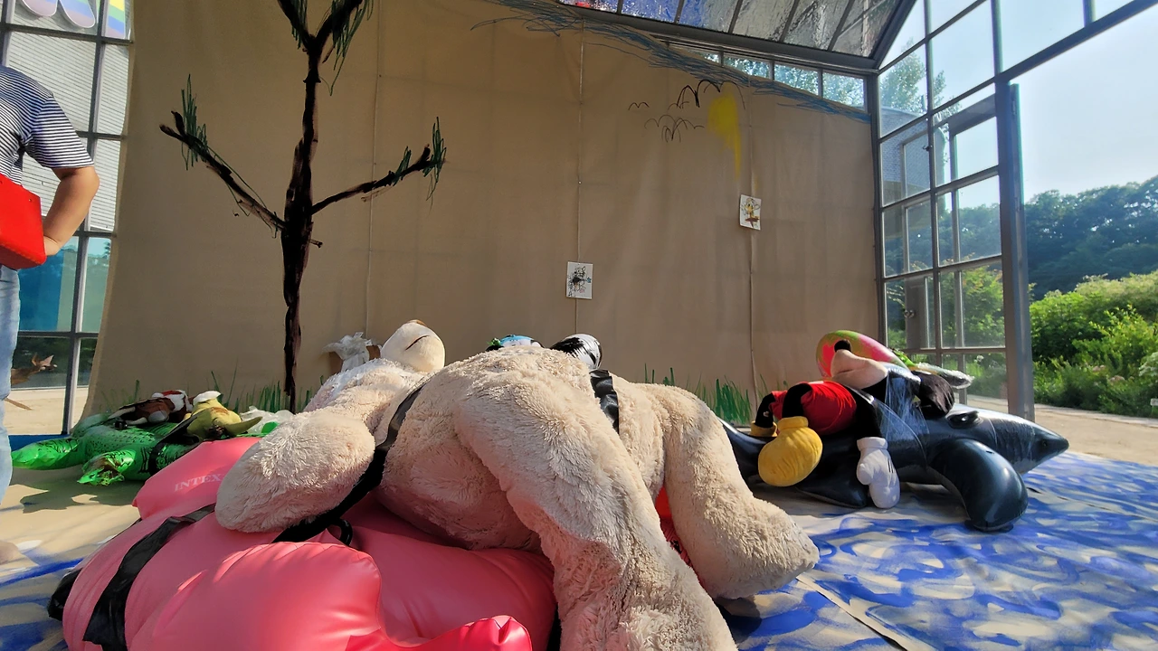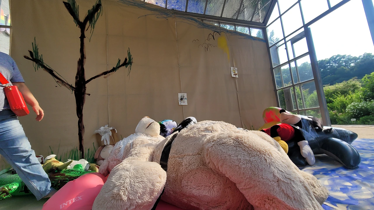 외부 글라스룸 전시장에 "선택된 난민들"이 들어왔다. 소장품이라, 수장고에서 선택된 이 아이들은, 귀여운 인형들이 여기저기 튿어진 컨셉으로 난민들처럼, 퇴색되고 빛바래있어서, 병맛 버전인가? 뭔가 허무해야하나? 귀엽고 멋지고 아기자기한 것이 아니라, 약간은 그로테스크하고, 인형인데 섬뜩한 살짝 맛이간 아이들이다. 그래서, 고급 미술로 평가 받는 것인가?