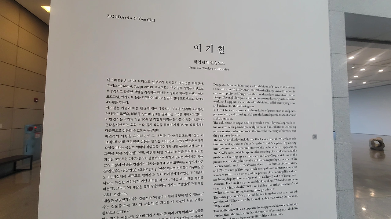 수창맨숀은 전시준비중이라 이번엔 로컬 청년작가들을 보려했던 경북대 미술관과 수창맨숀은 못보고, 그냥 시립과 예술발전소 등을 돌아보고 왔다.