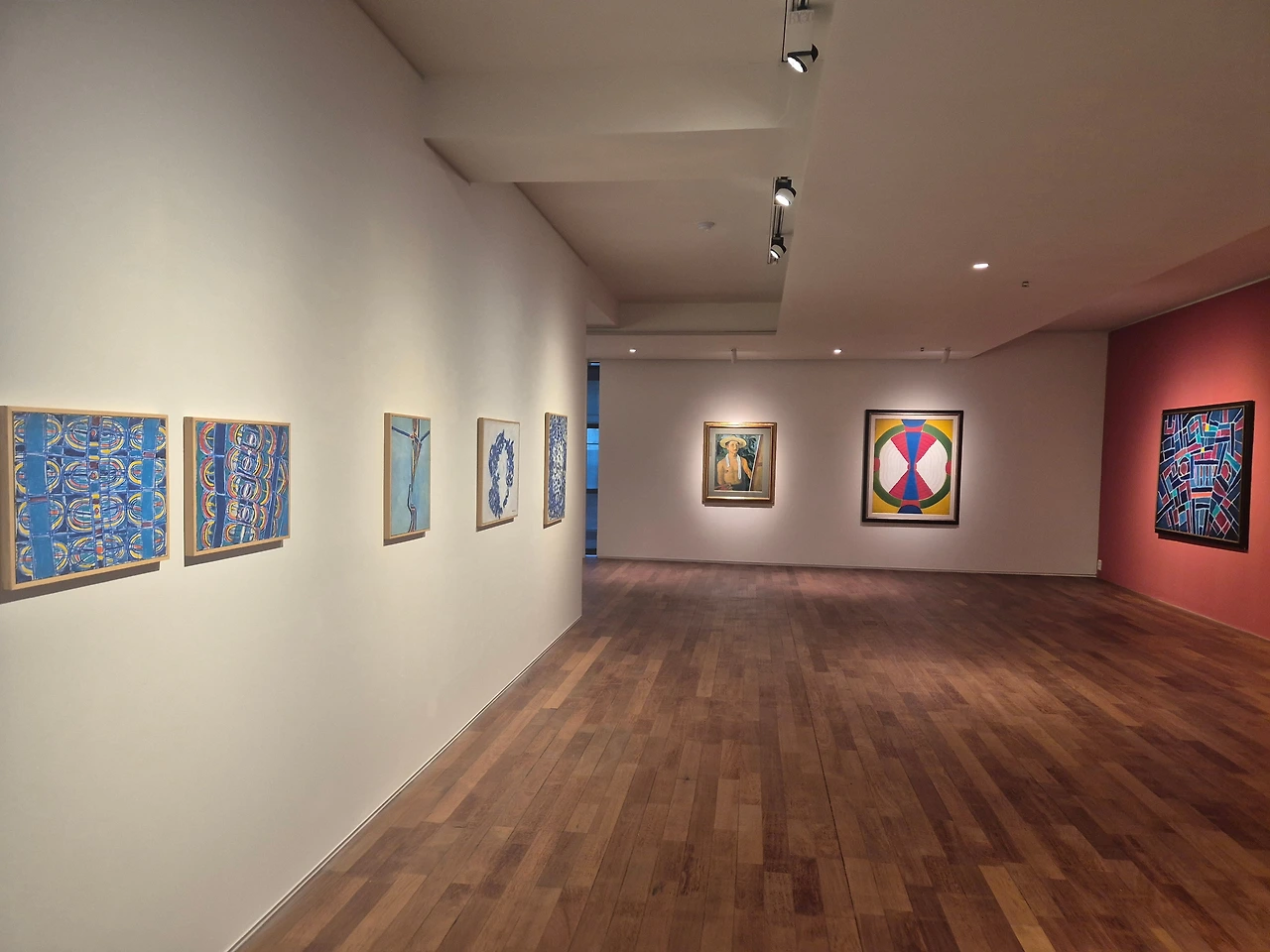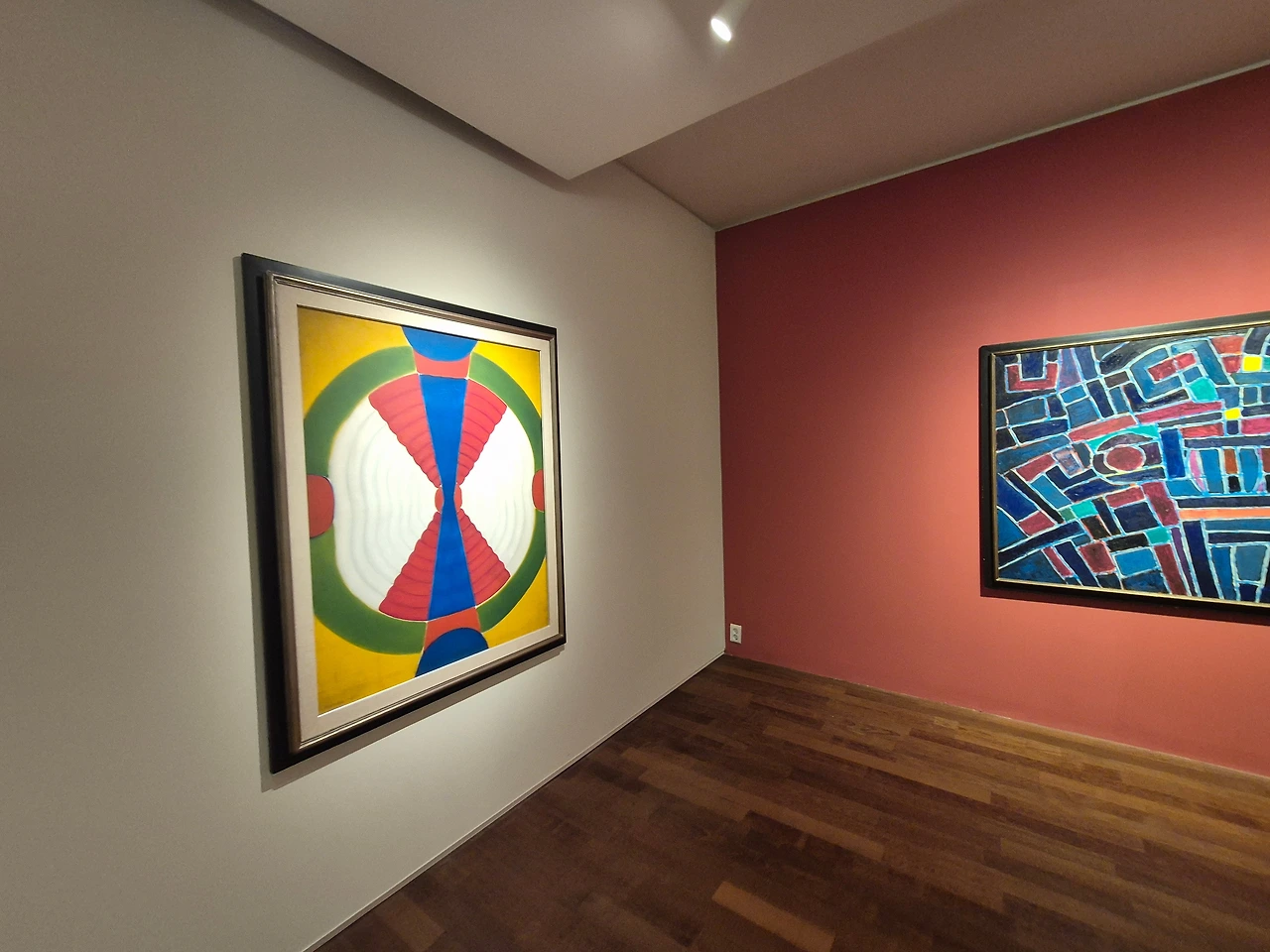 한국 전통과 불교사상을 기조로 한 한국 1세대 추상화가_하인두 작가(1930~1989)! 그는 1980년 구리시 아천동 거주하면서 투병 중에도 붓을 놓지 않았다. 불교철학을 기반으로 기하학적이고 삭면 추상 작업으로 그림을 그렸고, 70년대부터 우리 것의 뿌리를 찾고자. 불교 사상을 담은 작품으로 회, 윤, 만다라, 등의 작품이 있다. 한국 전통의 문양, 원색, 오방색이 사용되었다. 하인두 작가가 우주를 상징한다고 하면 하태임은 우주를 통하는 빛이라고 표현할 수 있다. 하태임작가의 소녀 같은 순수성과 부드러운 내면세계가 그 작품에서 느껴지는 듯하다.