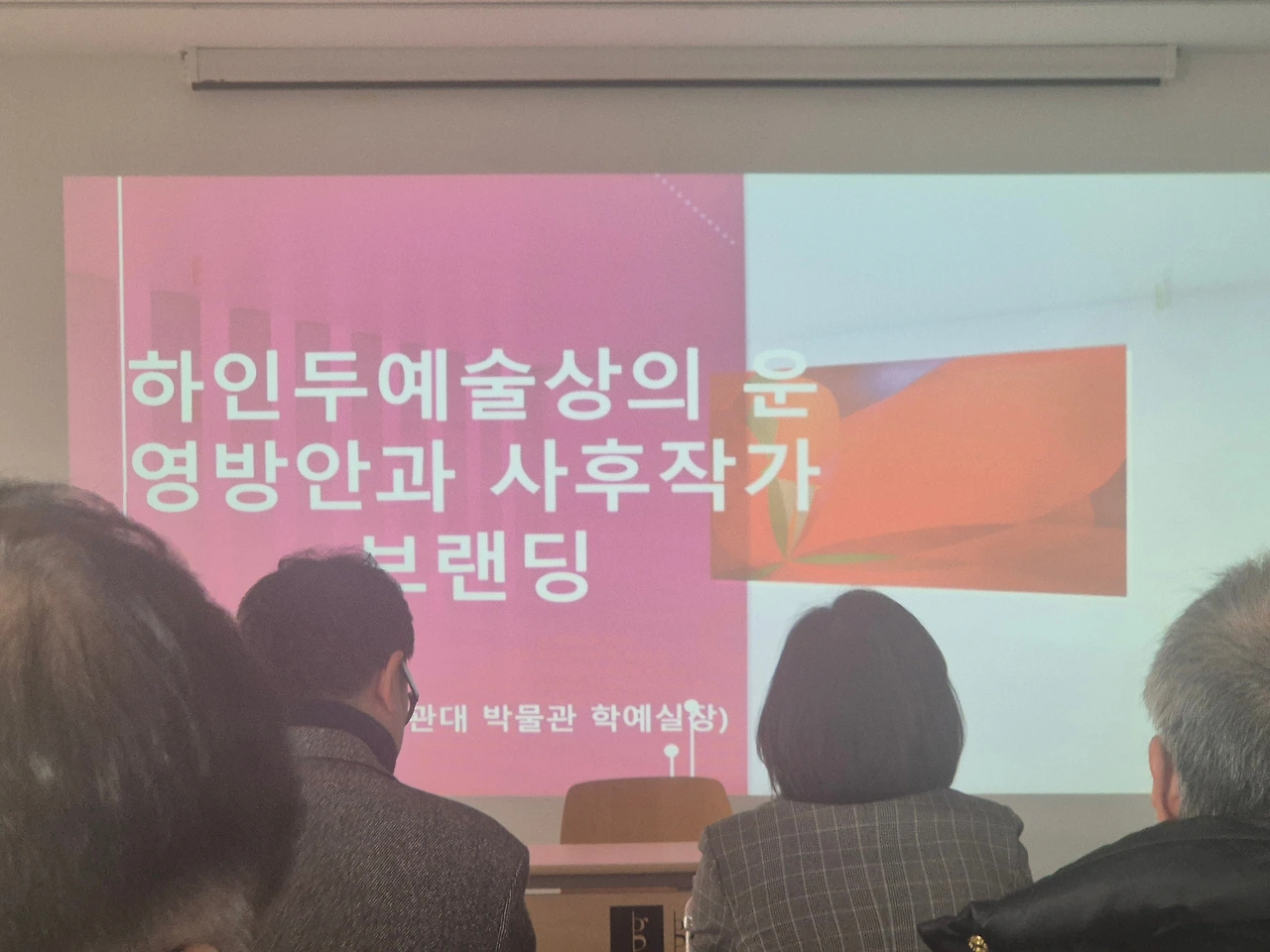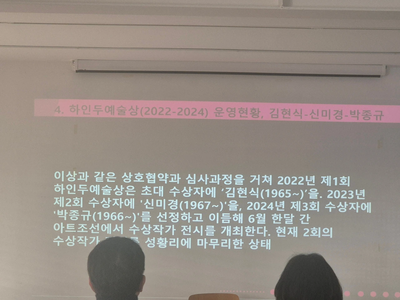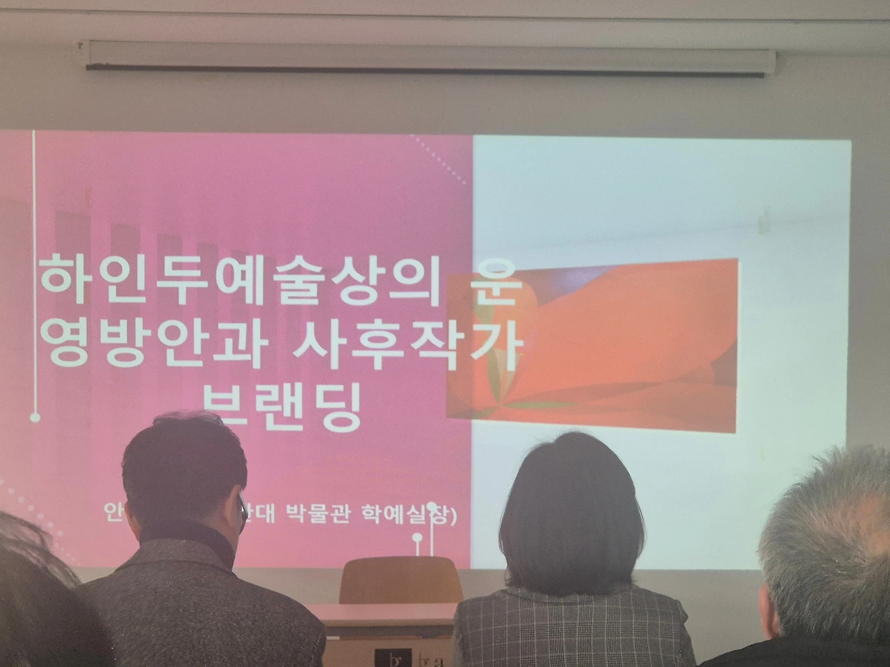 - 하인두 예술상의 운영방안과 사후작가 브랜딩은 59세에 돌아가신 하인두 작가의 빠른 작고 시기를 포인트로하여 50세 이하의 한국 대표 작가를 선정함