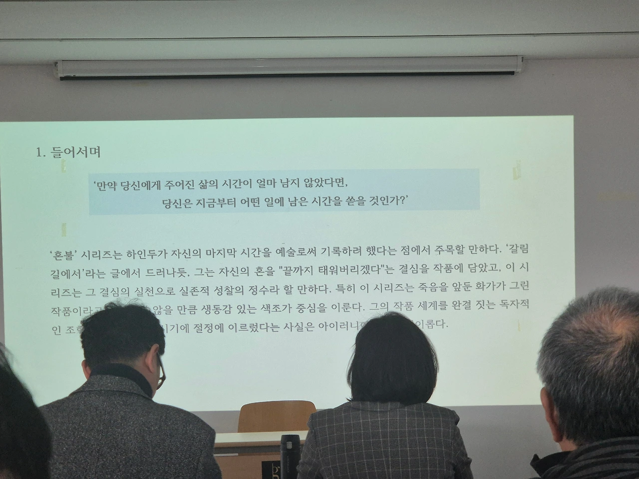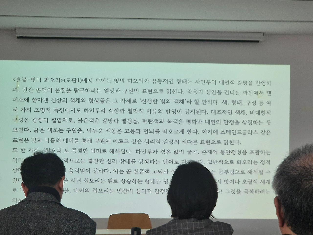 - 하인두 미공개작과 류민자 여사 구술채록을 통해, 미술사에서의 박서보 김창렬 등의 한국의 대표적 계보와 다른 한국을 대표하는 추상미술, 엥포르멜을 대가임을 발견할 수 있고, 최근 기획했던 장욱진 개인전 보다도 하인두 개인전을 국립현대미술관에서 추진해야 한다는 것을 실감하고 있음