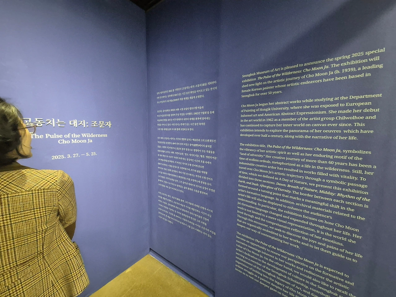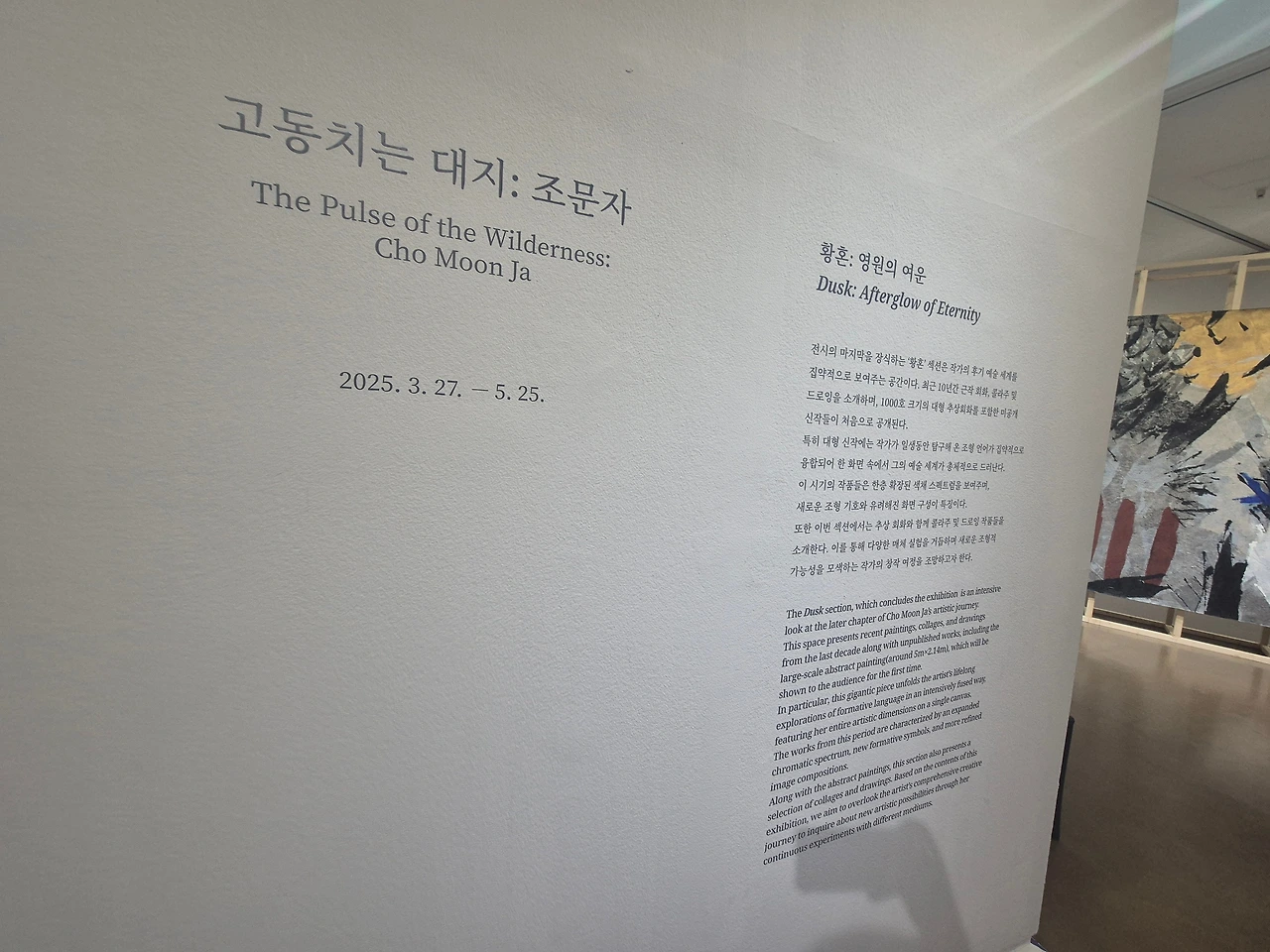 조문자 화백은 1939년생, 홍익대학교 회화과를 졸업하고 1960년대 초부터 본격적인 작업을 시작했다. 그 시절에 여성이 미술가로 살아간다는 건 지금보다 훨씬 더 외롭고 고된 일이었을 것이다. 그럼에도 불구하고 그는 스스로의 길을 묵묵히 걸었다. 앵포르멜과 추상표현주의의 영향을 받은 그는, 화려한 색채보다는 내면의 울림을 화폭에 담아왔다고 한다.