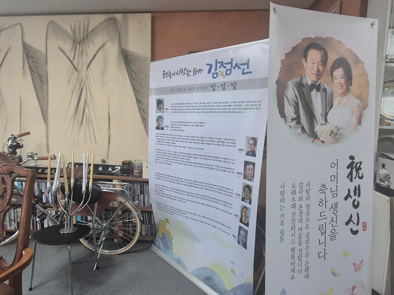 김점선 작가(1939년 9월 18일 ~ 2011년 12월 5일)가 처남댁인 권용태 회장(1934년 12월 16일 생)을 만났다. 권 회장님은 김점선 기념사업회의 두 번째 회장으로서, 그녀의 예술을 세상에 알리는 데 큰 역할을 해오셨다. 90세를 넘기신 나이에도 불구하고 권 회장님은 여전히 활기차셨고, 그와의 대화는 따뜻하고 깊이 있었다.
