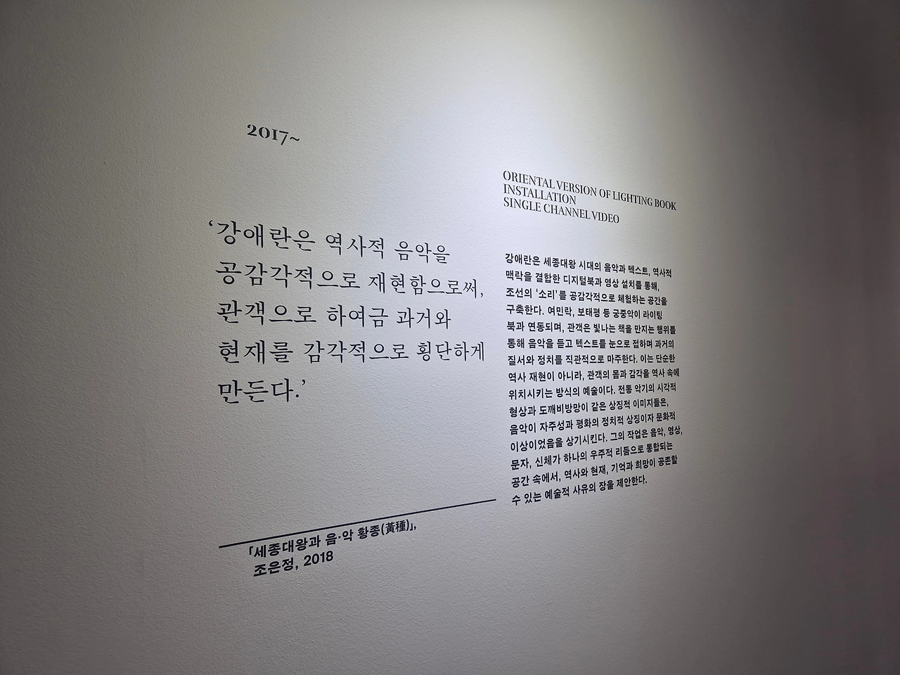 이 전시는 기술. 개념. ‘정서’로도 충분하게 만족도를 골고루 전달해준다.‘한’이라는 말은 번역되지 않지만, 그건 나의 것이기도 하다.