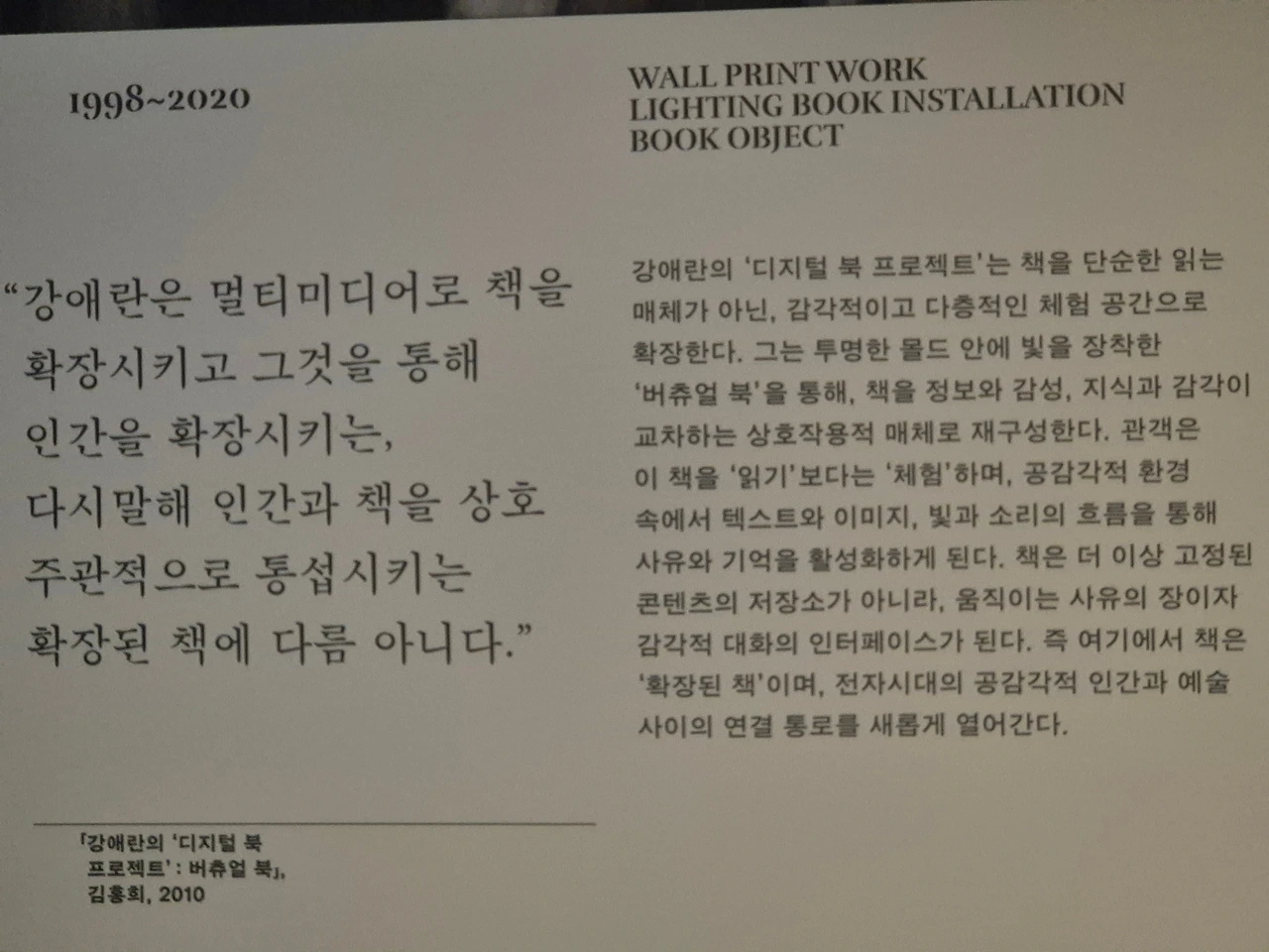 전시명: 《사유하는 책, 빛의 서재: 강애란 1985–2025》
