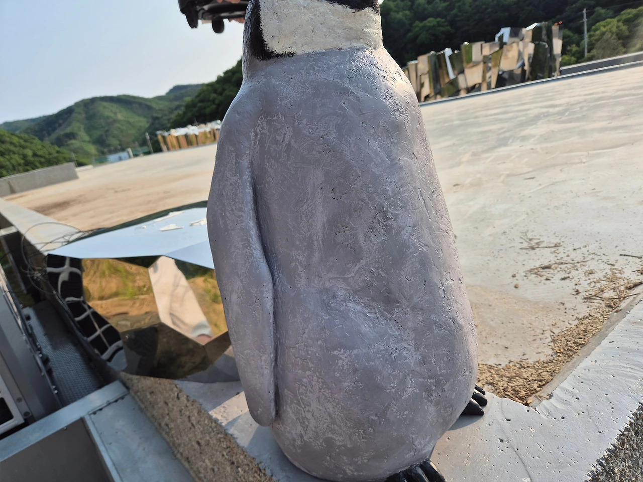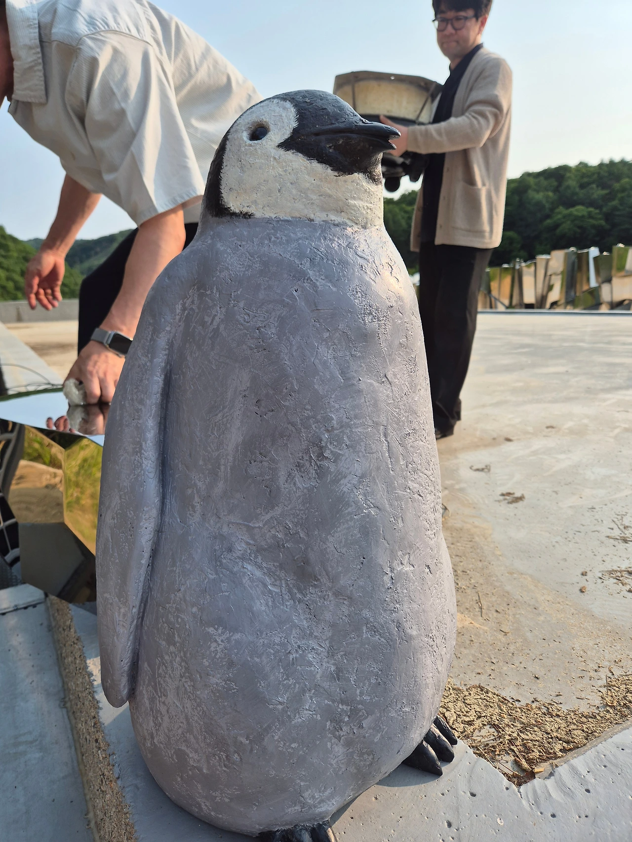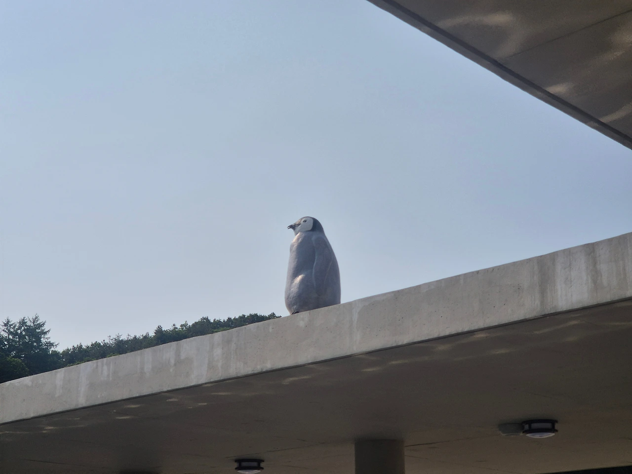물위로 거울반사되듯 스테인레스빙하위로 물방울이 떨어지고 대자연의 아름다움이 물과 그 스틸반사형태와 태양빛과 바람 그리고 물을 흐르는 소리까지 모두가 다 아름다운 조화를 이루고 있는데 바로 옆에 노골적인 펭귄이 뒤뚱거리는게 아니라, 어느 지붕위 생뚱맞게 펭귄 푸이는 있는듯 없는듯 조용히 그자리에 아주 존재감있게 에지있게 세련된 그의 자태를 뽐내고 있다. 다가가고싶은데 쉽지않는 푸이는 도도한데 너무 귀여운 모습으로 인류에게 매우소중한 교훈을 암시하고 말았다.