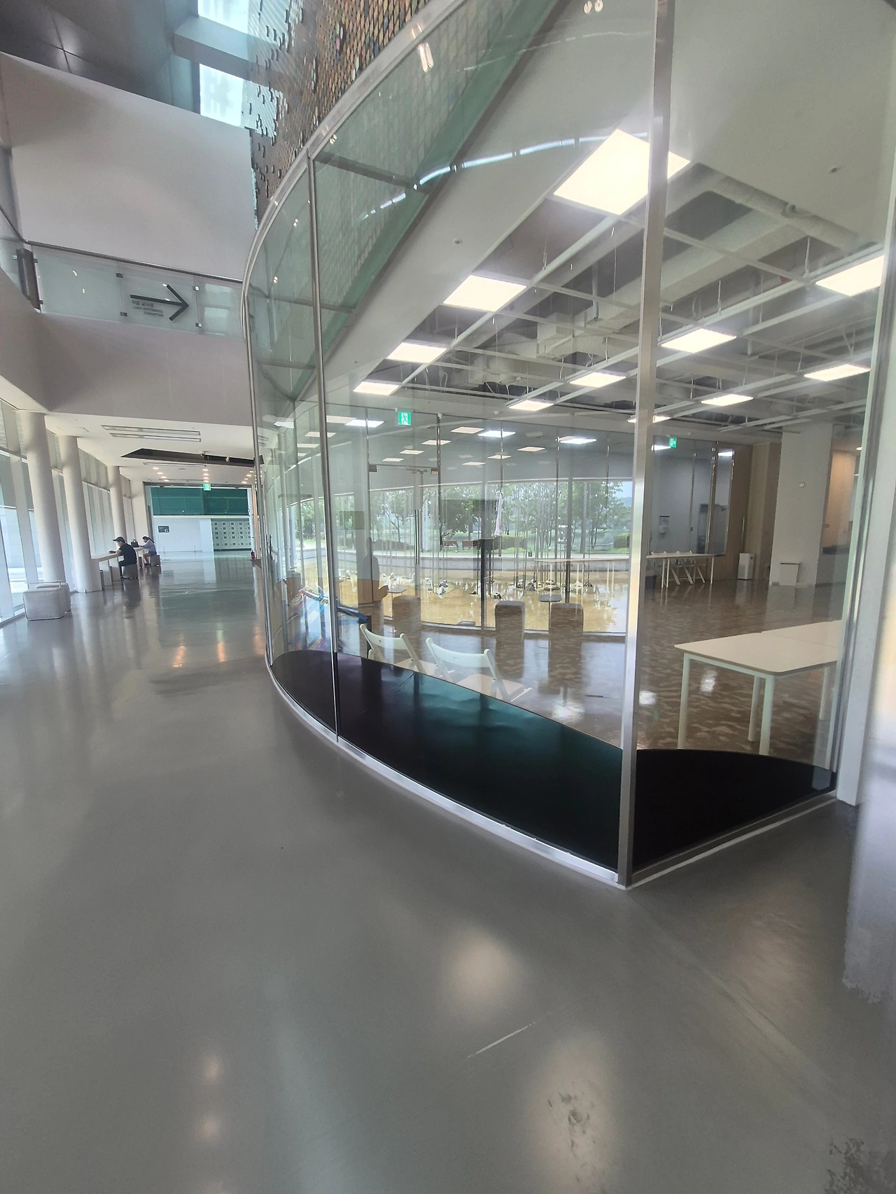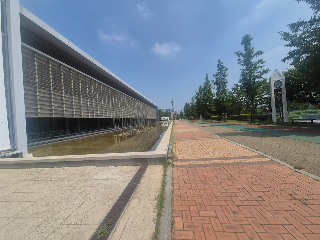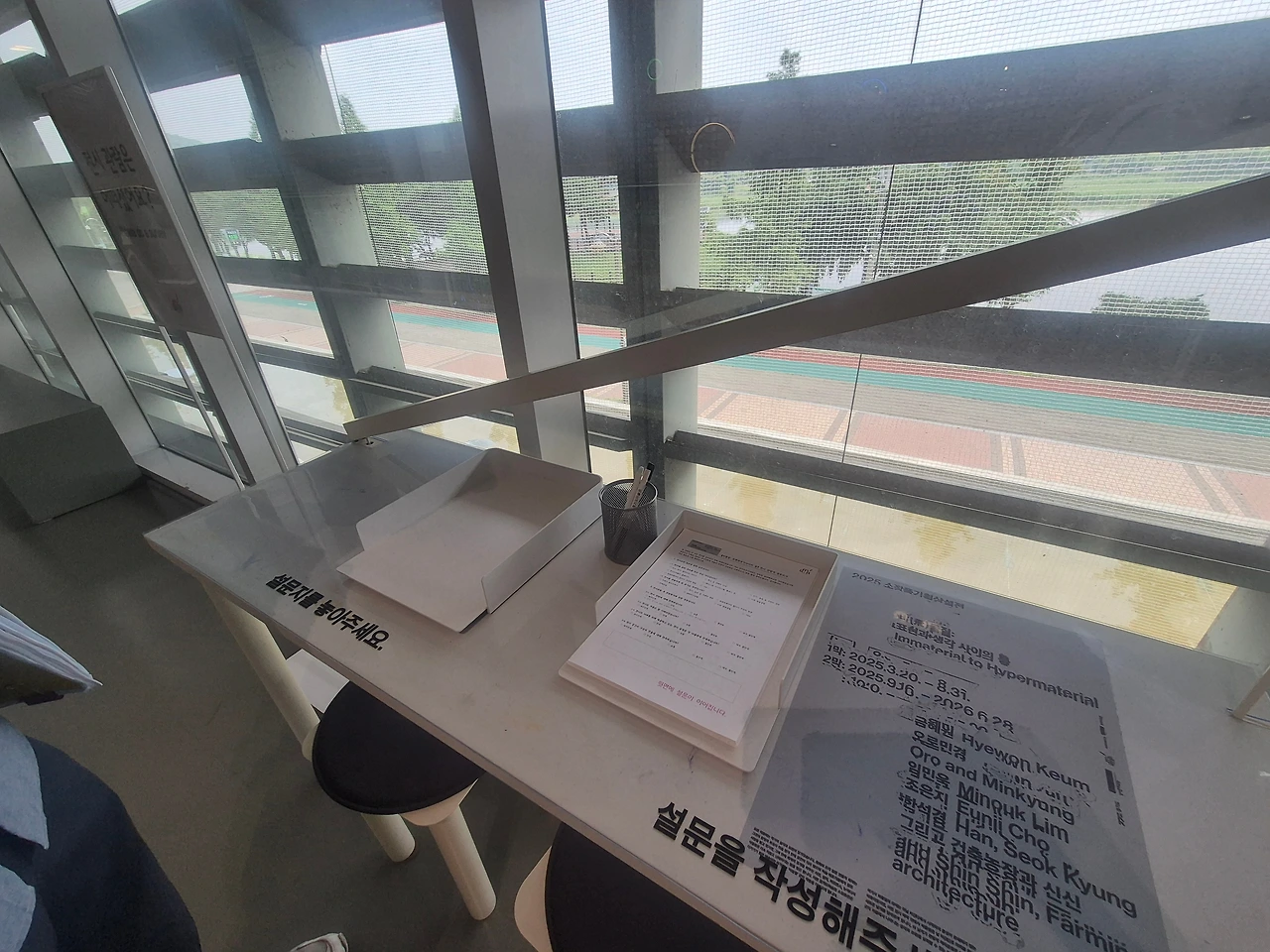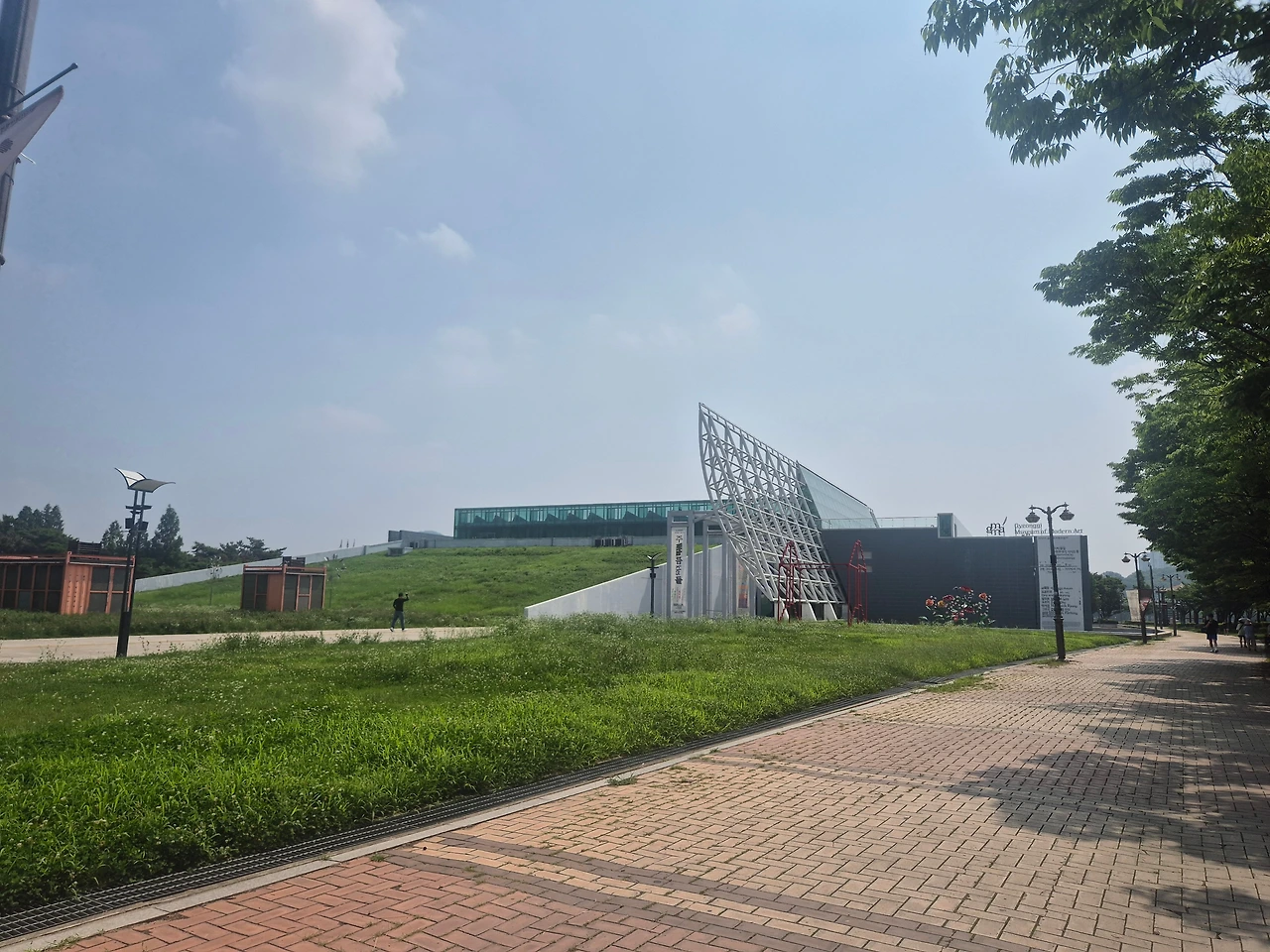 그때가 경기도립 초기 개관때 였으니까 벌써 20년 지났지만 이 미술관은 지금도 디자인이 낙후되어보이진 않는다. 3만평 산마루 공원에 비해, 10배까지는 아니고 20만평 유원지 속에, 2천평의 연면적으로 2층으로 지어진 미술관~! 지하는 없고 수장고가 반지하로 형성되어있다~. 연면적의 10프로~15프로 비율을 차지하는 수장고~