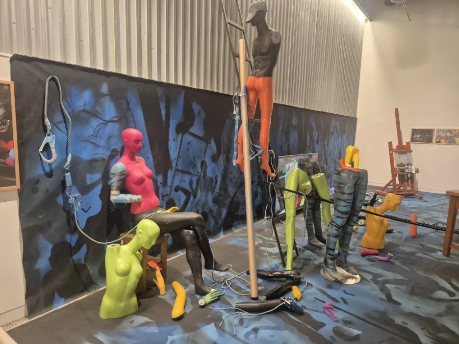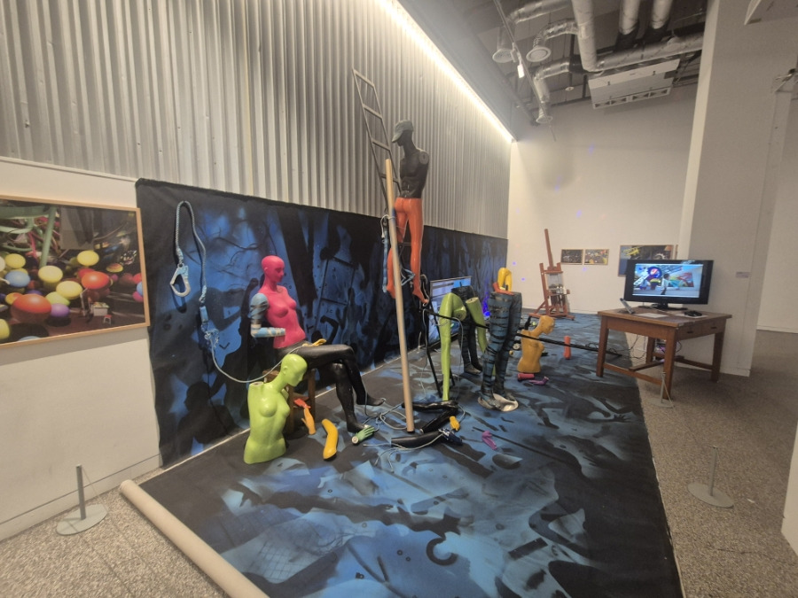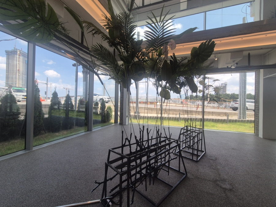 안효찬의 작업은 도시와 건축, 그리고 그 속의 불완전함을 드러낸다. 그는 시멘트와 철근, 타워크레인 구조물 사이에 과장된 돼지 모형을 배치해 디스토피아적 풍경을 구축한다. 인간이 발전이라는 이름으로 쌓아 올린 구조물 속에서 자연이 희생되고, 그 안에서 생겨나는 모순과 균열은 여전히 현재 진행형의 문제임을 일깨운다.