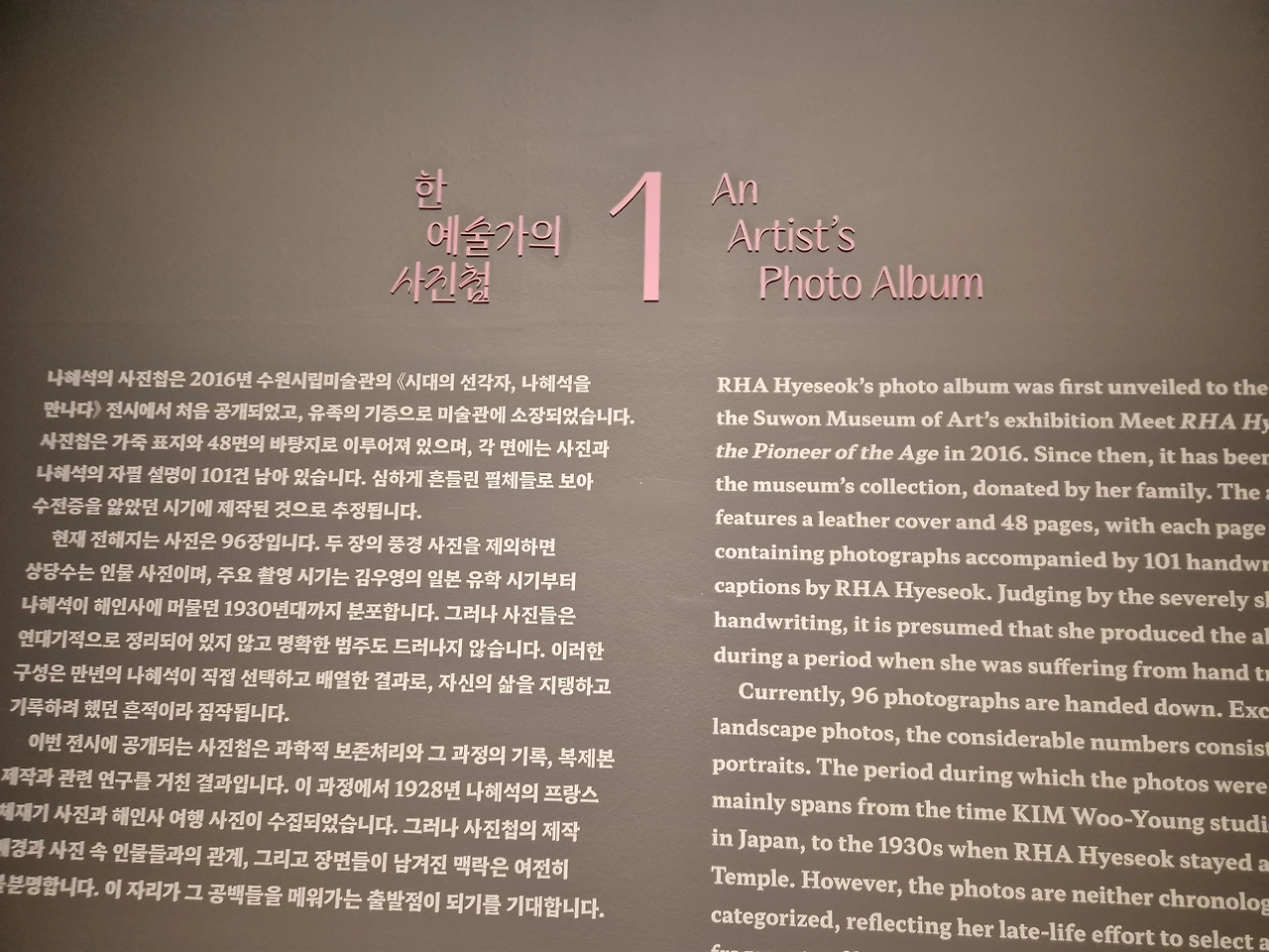 나혜석이 노년에 만든 사진첩(총 101점의 사진 + 자필 설명 포함) 공개됨.