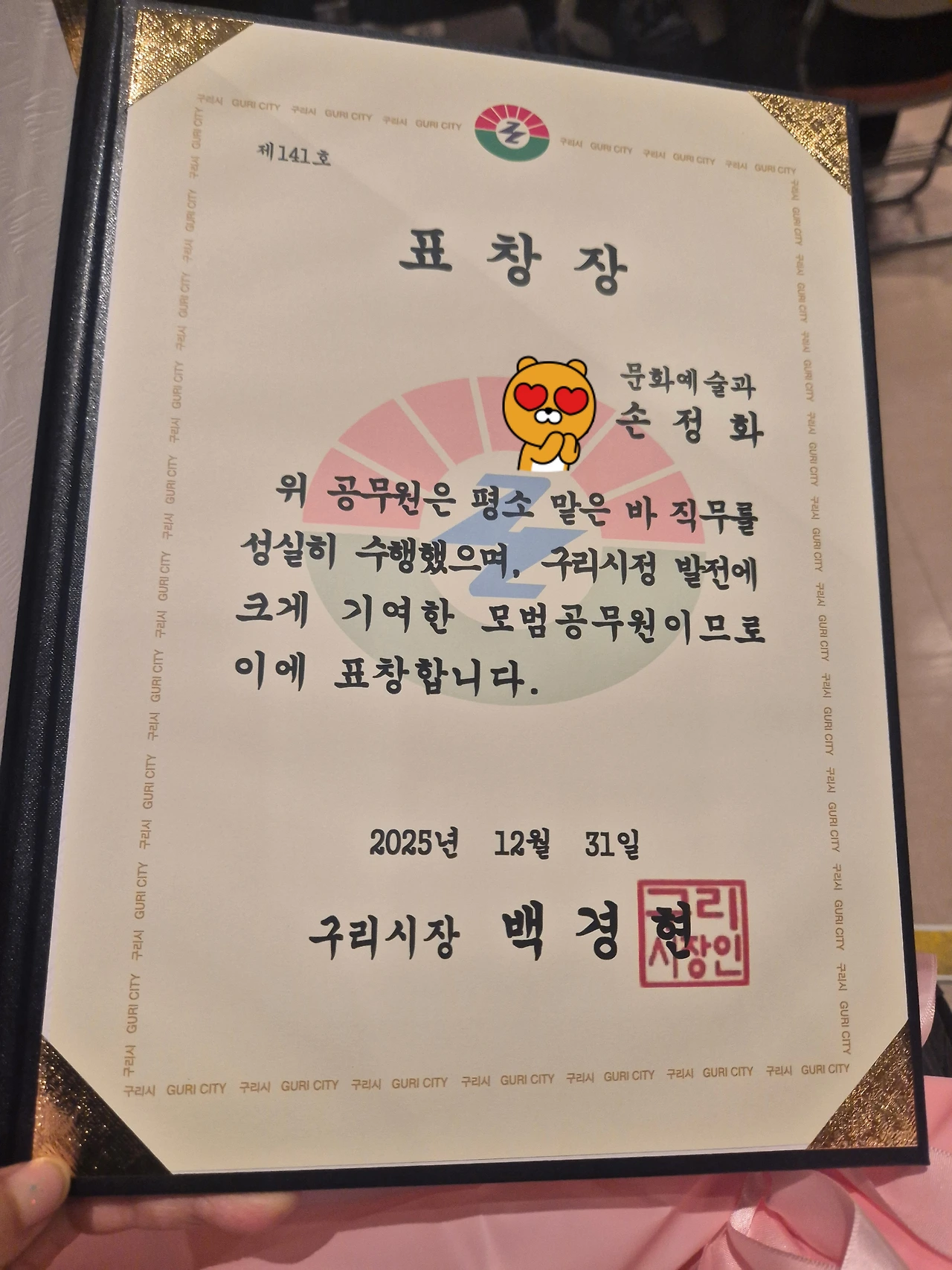 정말 다행스럽게도 다소 새롭고 고생스럽기도 했던 지난해, 그나마 연말에 받은 모범상을 받았다. 꽃다발 아버지 드리려고 4시간 엑셀 밟고 다녀왔다. 제일 소중한걸 부모에게 드리고 싶은 딸의 마음이랄까. 80세 아버지가 말씀하셨다. 방방 뛰고 있는 나에게 이제 50살이니 조카에게 위엄 있는 고모가 되라고. 꼬맹이들 친구처럼 군다고 하신다. 위엄이나 체통 나오겠지... 저절로. 80살 나도 곧인데???45년 해방 이후 태어나고 6.25 보릿고개 새마을 운동 겪고 은퇴하고서야 중. 고등 대학3학년까지 80에 영어한자 공부하시는 DNA 닮았는지. 50에 박사 시작한다. 아버지에 비하면 고생 아니지. 놀 시간이 모자라. 2030년 시작하는 새해! 과연 책 낼 수 있을까?