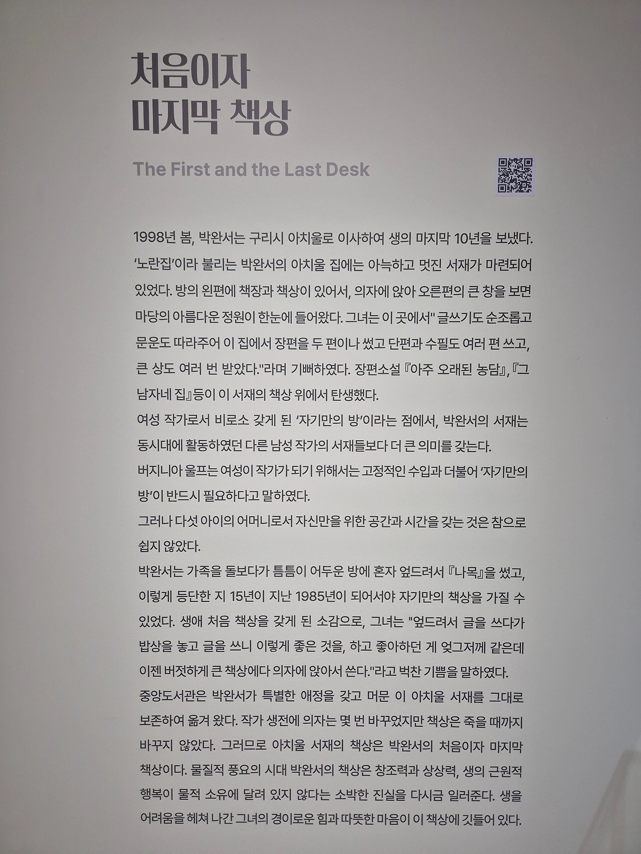 정리하면, 박완서 아카이브는 2026년 2월 서울대학교 헤리티지 라이브러리 내에 개관한 상설 문학 기록 공간으로, 재현 서재·육필 자료·생활 유물·기증 도서·디지털 자료를 아우르는 복합형 아카이브다. 연구·교육·대중 전시 기능을 동시에 수행하는 현대문학 기록 플랫폼이라는 점이 핵심이다.
