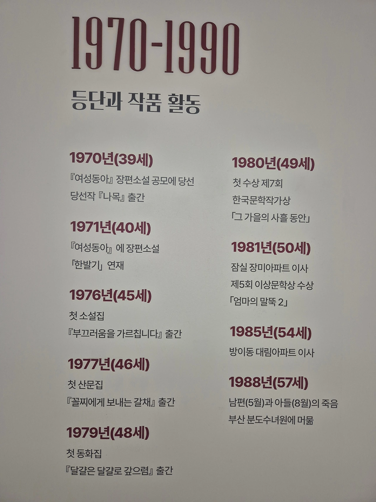 기증 도서 역시 별도로 정리되어 2026년 3월부터 연구 열람이 가능하도록 운영 계획이 수립되었다. 이는 단순 기념관 기능이 아니라 연구 아카이브로서의 성격을 명확히 한 조치다. 학부생, 대학원 연구자, 문학 연구자들이 실질적으로 접근할 수 있는 자료 기반을 갖추었다는 점에서 학술적 활용도가 높다. 전후 한국사회, 여성 서사, 가족사, 도시 중산층 문화사 연구 등 다양한 주제 확장이 가능하다.