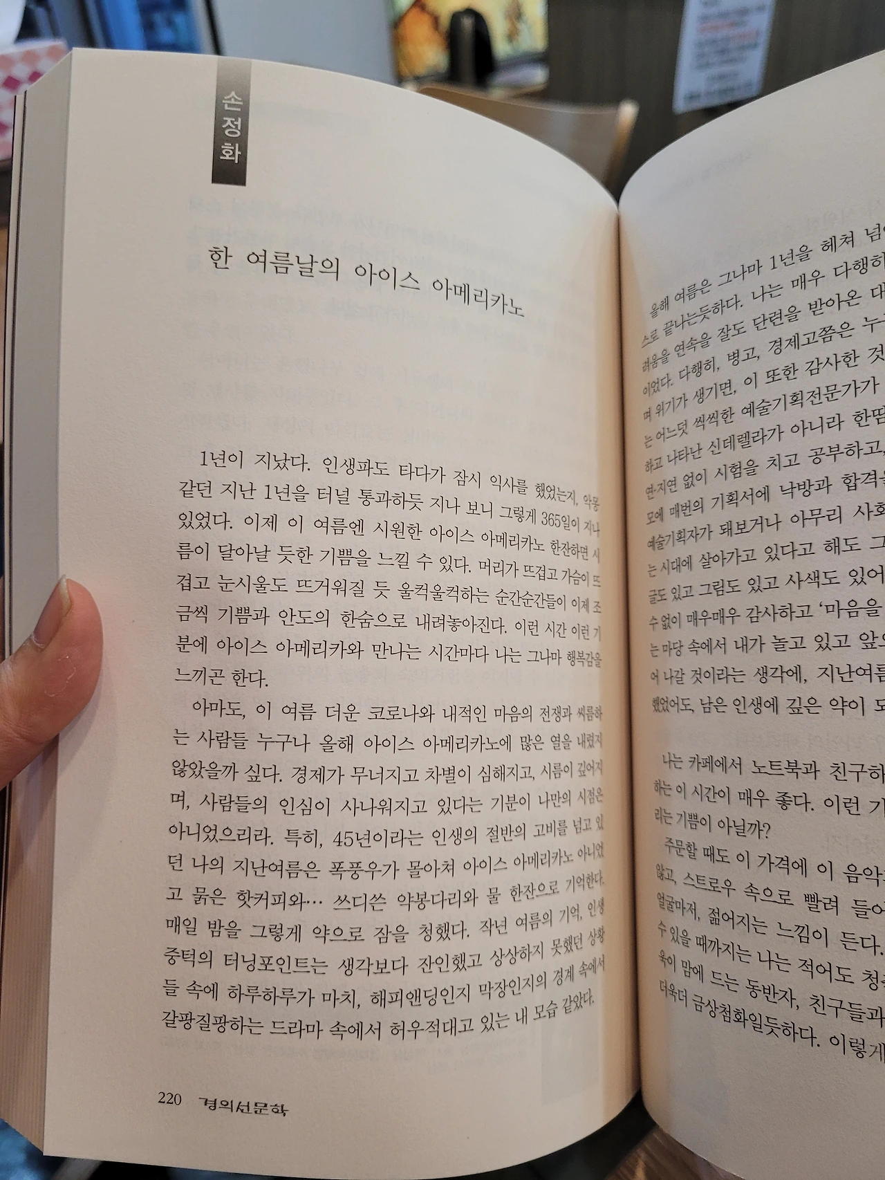올해 여름은 그나마 1년을 헤쳐 넘어와 아이스로 시작해 아이스로 끝나는듯하다. 나는 매우 다행히, 타고난 가난과 타고난 어려움을 연속들을 잘도 단련을 받아온 대구 출신의 생기발랄한 사람이었다. 다행히, 병고, 경제고쯤은 누구나 겪을수 있다고 생각하며 위기가 생기면, 이 또한 감사한 것이라고 받아들이고보니, 나는 어느덧 씩씩한 예술기획전문가가 되어있었다. 영화 속에서 뿅하고 나타난 신데렐라가 아니라 한땀 한땀, 누구의 도움 없이 학연 지연없이 시험을 치고 공부를하고, 인턴시절을 거쳐, 국가 공모에 매번의 기획서에 낙방과 합격을 반복하며 이제 20년차의 예술기획자가 되보고나 아무리 사회가 각박하고 배신이 이어지는 시대에 살아가고 있다고 해도 그래도 내가 숨 쉬는 세계에는 글도 있고 그림도있고 사색도 있어서 나는 가끔 내 삶에 불평할 수 없이 매우매우 감사하고 ‘마음을 경작’해 준다고하는 ‘문화’라는 마당 속에서 내가 놀고있고 앞으로도 잘 놀며 친구들을 사귀어 나갈 것이라는 생각에, 지난 여름의 배신의 늪속에 울며 불며 했었어도, 남은 인생에 깊은 약이 되었으리라 생각해 본다.