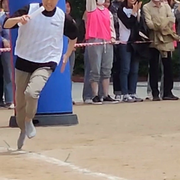 여튼 남녀가 번갈아가며 바통을 받는 이어달리기인데 앞서 달린 백팀 어머님, 아버님들이 이미 청팀과 너무나 격차가 많이 벌어지는 바람에 이미 운동장 반바퀴이상이 차이가 나 조금은 시시한 타임에 남편이 맨발로 달리기 시작했고 사실 슈퍼맨이 아니고서야 역전은 불가능한 거리였다.