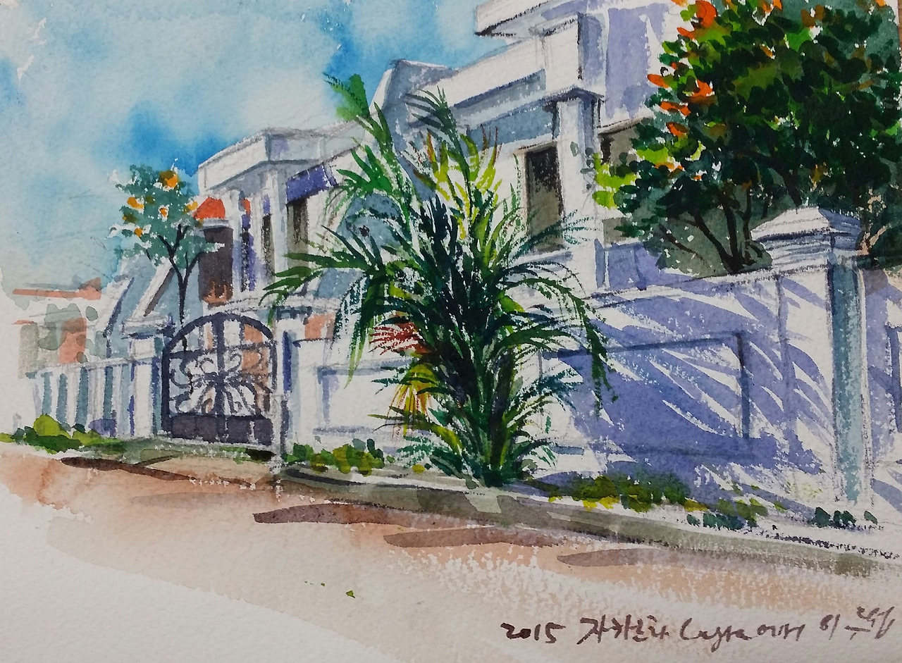 갑자기 퍼붓는 비를 피해 좁디 좁은 골목길의 처마밑에서 바라보는 바나나 나무, 낮은 채도의 몽환적 풍경은 여행자의 감성을 , 개인적 스토리를 더욱 견고하게 만들어 주었다.