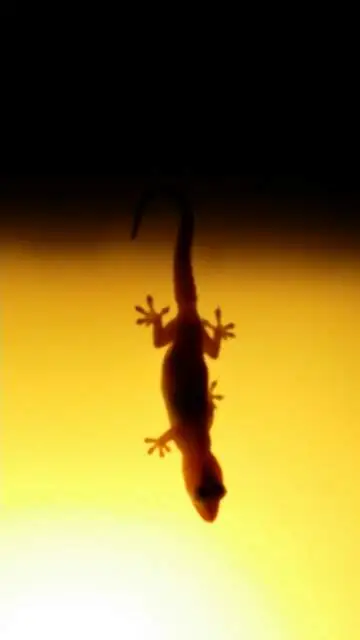 게스트하우스의 창문에 달라붙어 무언가를 옅보는 도마뱀의 자카르타.