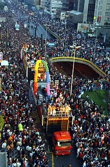 "내일 Pride (LGBT) 퍼레이드가 있어. 그게 너네 집 앞에서부터 출발해."