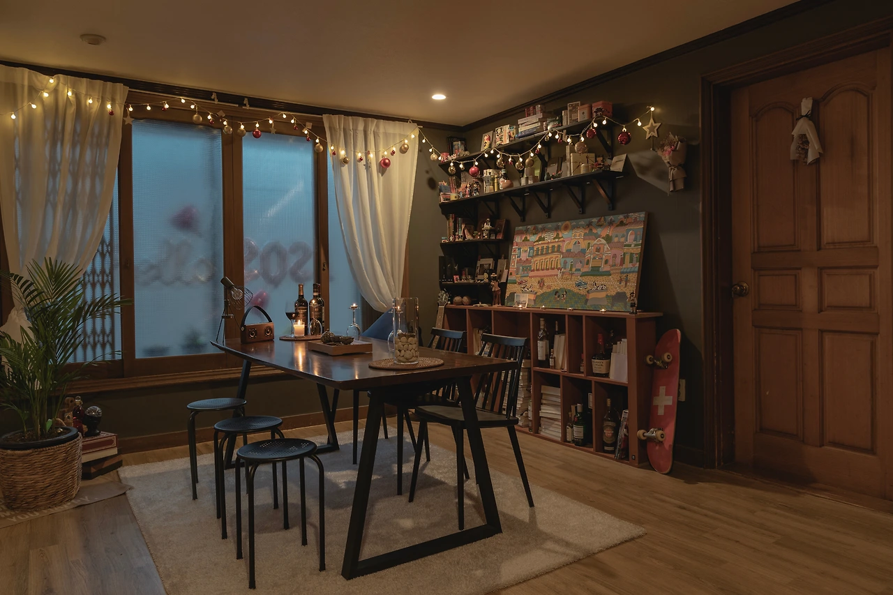 집에 사람들을 초대할 때면 현관 앞 계단에서부터 알록달록하게 움직이는 조명으로 맞이한다. 현관은 집 전체에서 가장 밝고 쨍한 빛으로 사람을 맞이하고, 거실로 들어오면 온통 촛불이다. 루프탑에 올라가면 오징어잡이 배에서 볼 법한 전구들이 주렁주렁 매달려있다. 조도가 맘에 들지 않으면 전구에 옷을(?) 입혀서 톤을 맞춘다. 이렇게 비로소 내 집이 내가 좋아하는 비주얼로 내 앞에 나타날 때 더할 나위 없이 내 공간이 사랑스럽다. 소중하고 아까워서 귀히 여기게 된다.