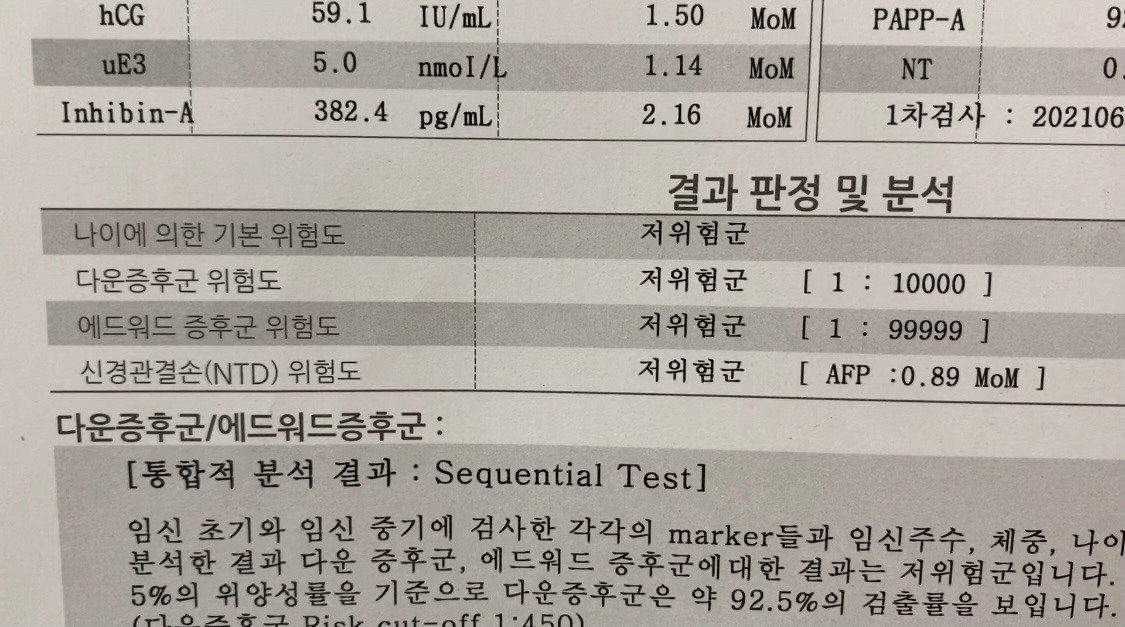 1차 기형아검사에서 고위험군으로 판정되어 혹시 우리 아기가 다운증후군으로 태어나지 않을까 전전긍긍하며 마음 졸이는 시간도 가졌고.