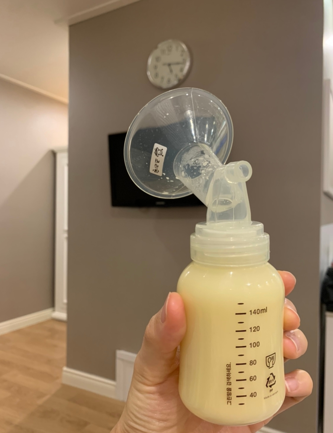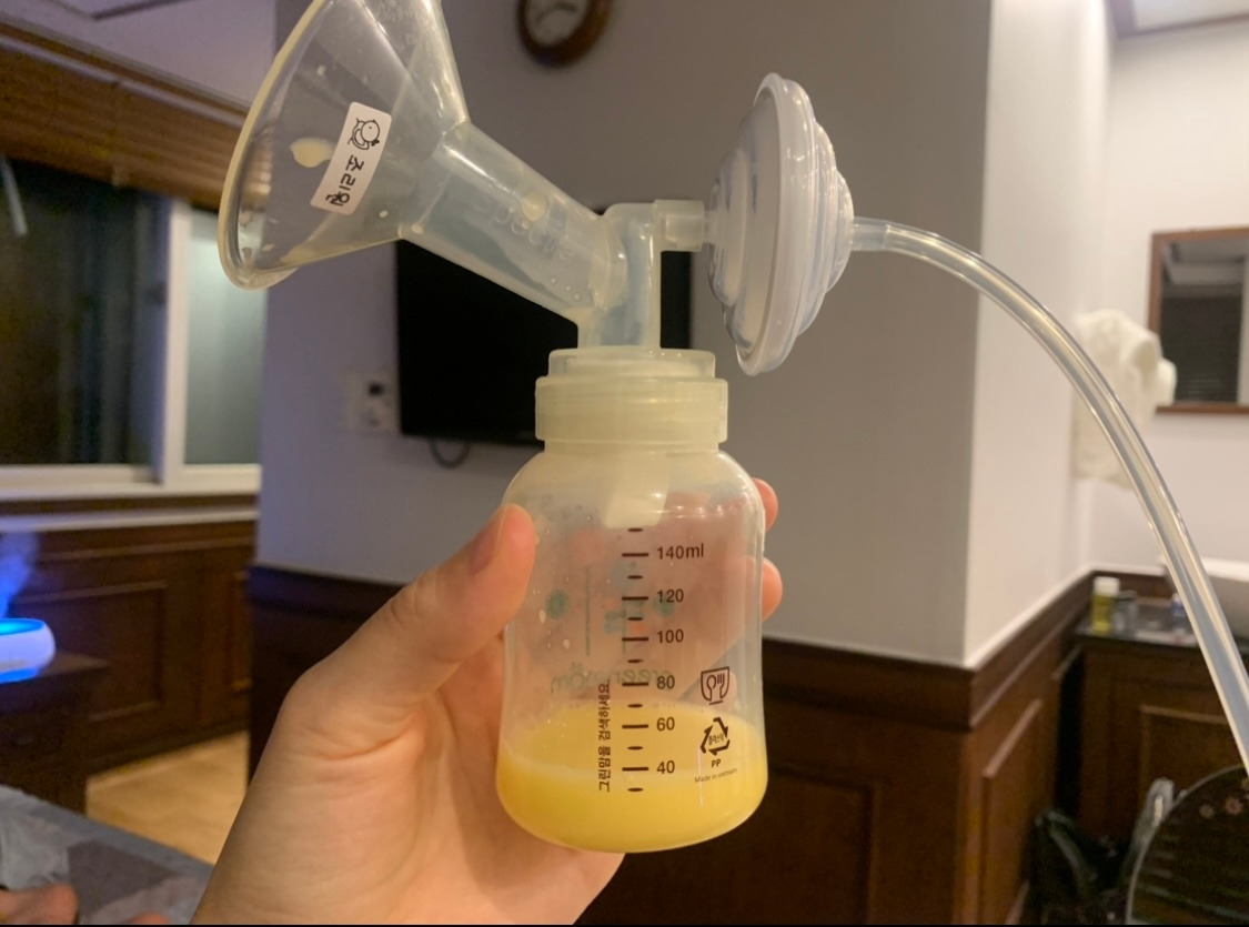 사이사이에 유축을 하고, 수유콜을 받고 가면 얼마 나오지도 않으는 젖을 아들은 열심히도 빨아주었다. 모유촉진차를 달고 살며 삼시세끼 국물을 원샷했다. 유튜브로 배운 기저부 마사지도 하고 틈틈이 따뜻한 물로 온찜질했다. 이틀이 지난 새벽, 마침내 초유가 뿜어져 나오기 시작했다. 그렇게 출산 5일 차, 수유를 시작한 지 이틀 째 되던 날 40ml의, 바나나우유같이 샛노란 초유가 생성되었다. 그러고난 다음날 오전 유축에서는 50ml, 오후에 60ml, 저녁에 80ml까지 나왔다. 그렇게 쭉쭉 늘어가던 모유는 출산 8일째가 되니 무려 180ml, 젖병을 가득 채우고도 넘칠 양이었다.