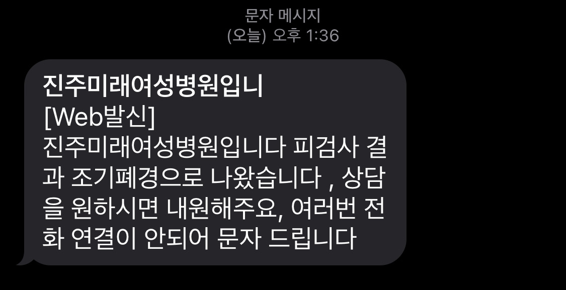 그런데 온 검사 결과 문자.