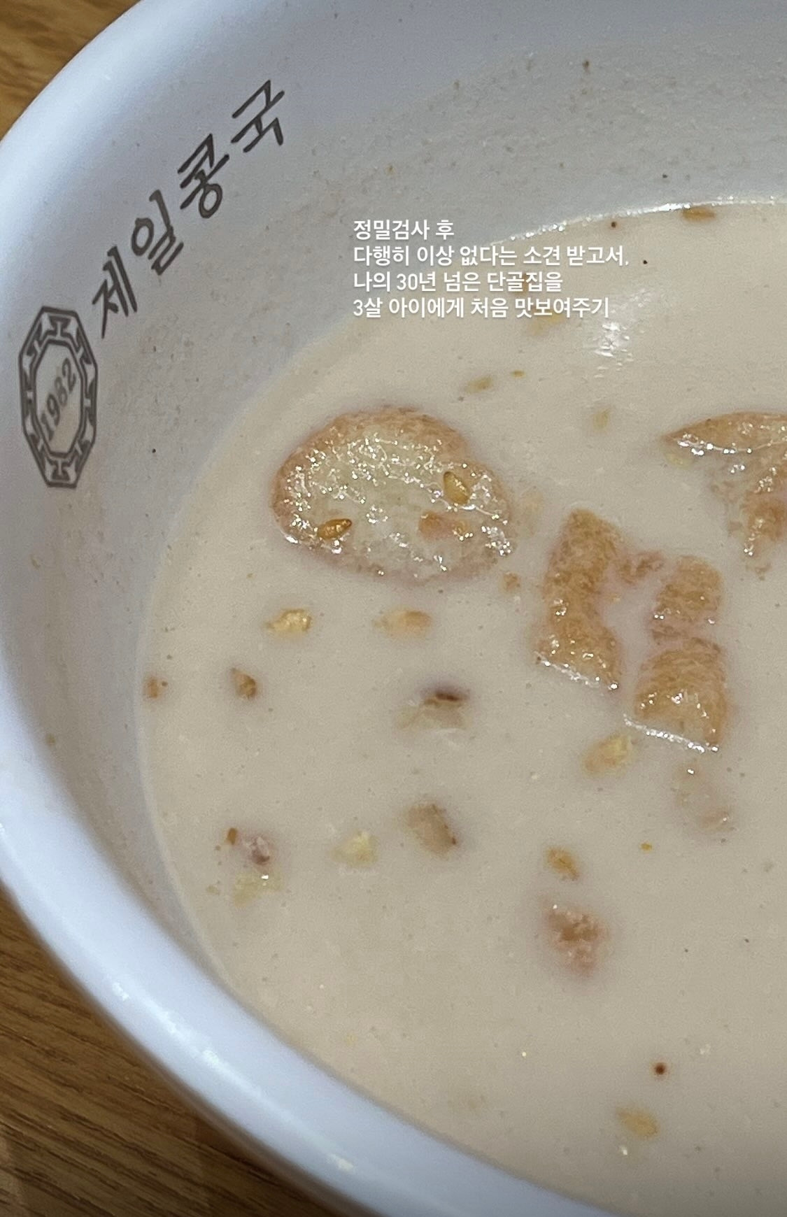 쾌차 기념으로(?) 삼촌은 조카가 좋아하는 딸기케이크를 사놓고 기다리고 있다 했고, 병원에 오느라 아침을 거른 우리는 오랜만에 나의 소울푸드 가운데 하나인 콩국을 먹고 가기로 했다.