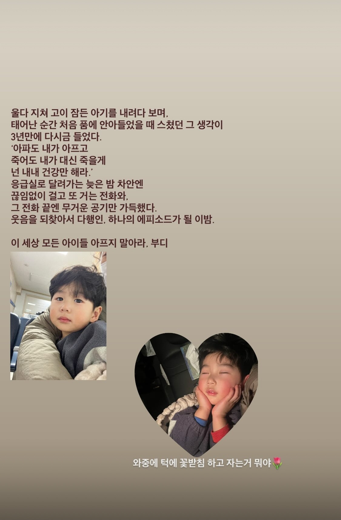 친정식구들에게 알리고 친정집으로 갔다. 그때가 밤 11시 반. 모두 한달음에 나와 손주를, 조카를 안고 살폈다. 언제 울었고 언제 아팠냐는 듯 아이는 좋아하는 할미집에서 그러고 한 시간을 뛰어놀았다. 또다시 안 자는 아이에 나는 힘은 들었지만, 이렇게 웃음을 다시 볼 수 있다는 사실에 그것만으로 어디랴.