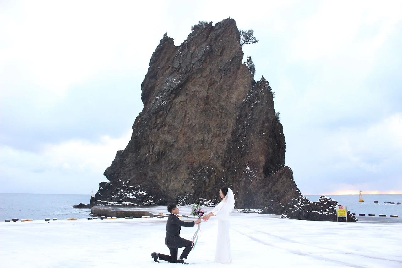 이 추운 날씨에 왔느냐며, 그리고 눈이 이렇게 많이 오는데 얼른 찍고 내려가야지 안 그러면 빙판길 미끄러워서 못 내려갈 거라고 걱정 뒤섞인 조언을 해주시는 호텔과 카페 관계자분들. 카페에 짐을 내려놓은 뒤 사진을 찍으러 나갔다. 비록 바라던 맑고 투명한 바다나 늠름한 추산은 시야가 흐려 잘 보이진 않았지만 눈이 예쁘게 내려주니, 이 또한 좋지 아니한가.