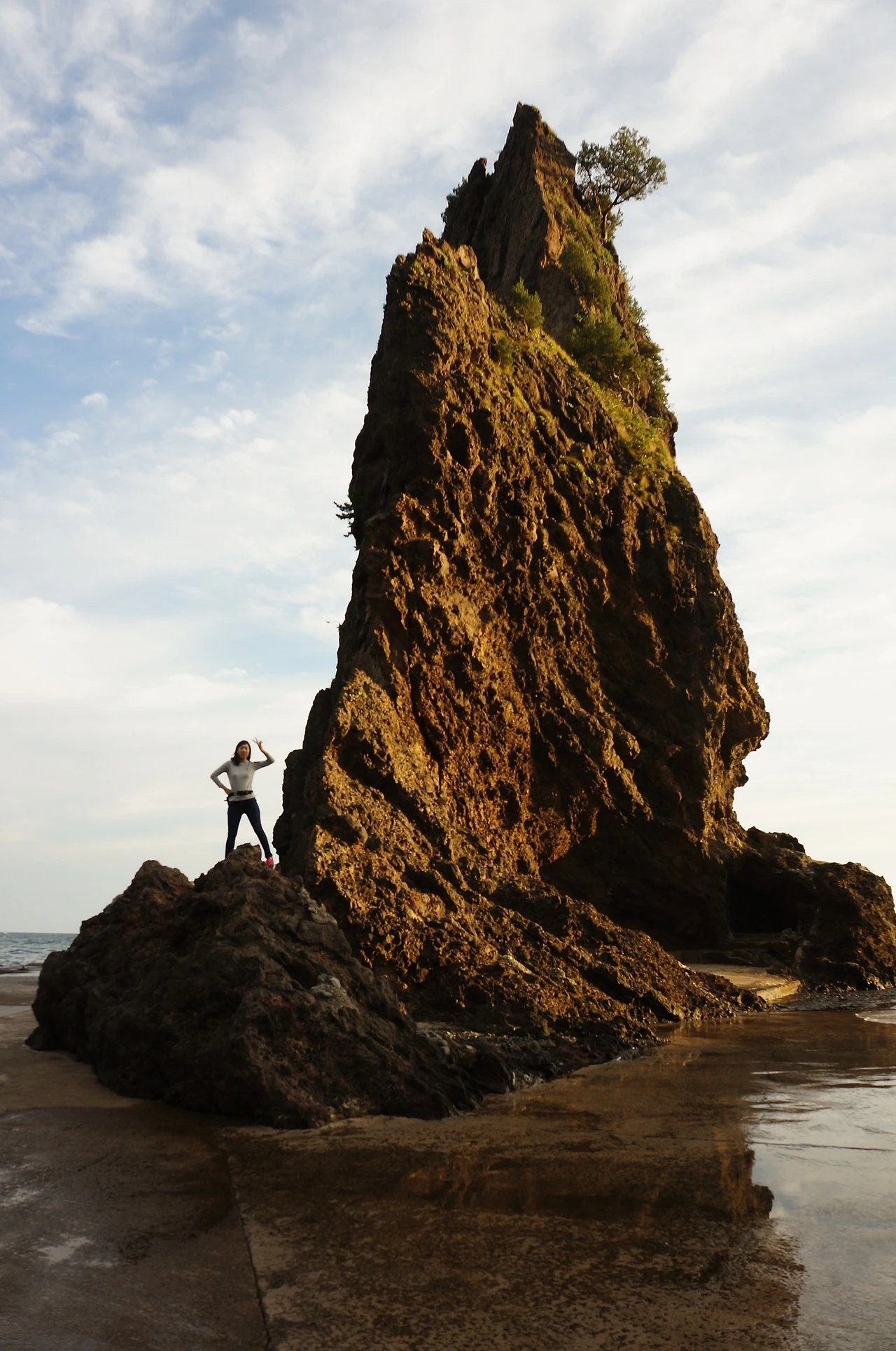 이미 눈이 제법 쌓인 아주 가파른 경사길을 천천히 조심해서 내려와, 사동으로 돌아가는데 도로가 얼어 미끄럽다. 트럭 한 대가 나아가질 못하고 뒤에서 밀고 있고 우리 차도 미끌리기 시작했다. "이대론 안 되겠어. 차 돌려야겠다." 강원도 군 시절 운전병하며 눈길에서 차가 미끄러져 큰 사고로 이어질 뻔했던 트라우마가 있는 그이기에 상황판단이 옳았다. 현포로 돌아가 우선 차를 댔고 밥 먹을 곳을 찾았다. '현포반점'이라는 나름의 맛집으로 유명한 중국집. 그곳에서 짜장면과 중화비빔밥을 먹고 몸을 녹이고 나왔다. 화관을 놓고 왔다는 걸 알고 다시 코스모스리조트로 찾으러 갔고, 눈이 쌓여 화관은 아주 끄트머리만 보였다는 게 그의 말. 어쨌든 대여한 건데 찾아서 다행 :> 콩맨 말을 빌리자면 여러모로 손이 많이 가는 여자 나야 나. 그리고 마지막 코스는 통구미 바위에서. 예전에 울릉도 왔을 때도 좋아하던 스팟인지라 여기서 안 찍을 수가 없었다.