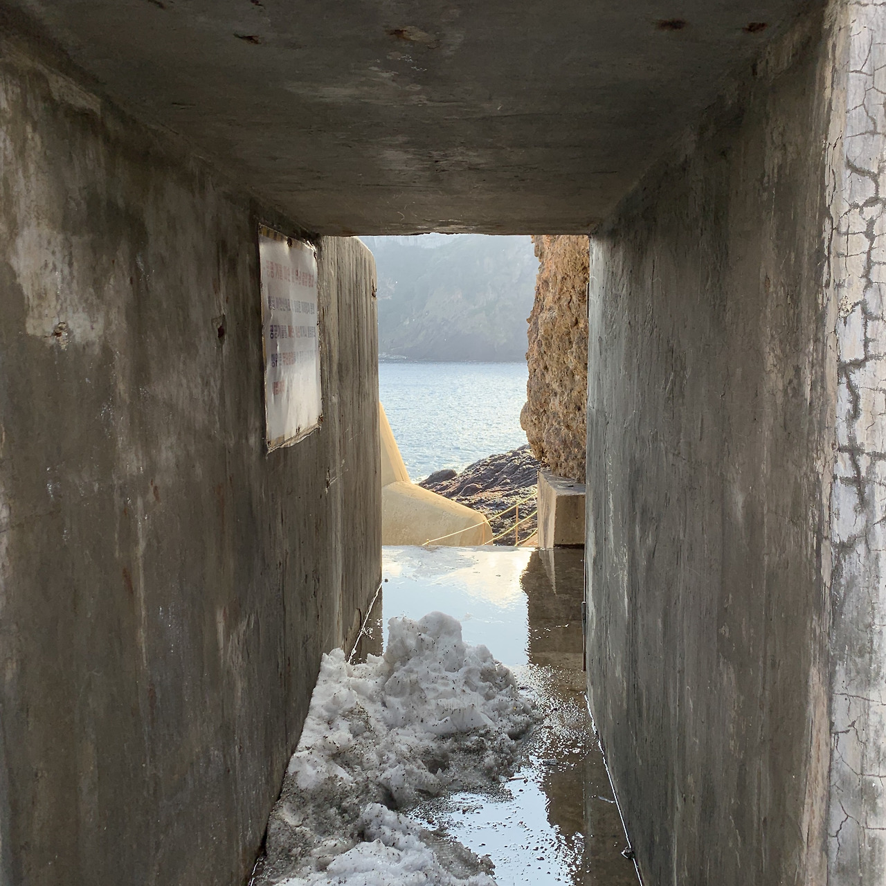점심을 먹고 나와 약국에서 멀미약을 사고 마침 문이 열린, 해안산책로를 거닐었다. 7년 전 울릉도에서 했던 것 중 좋았던 걸 순서에 상관없이 꼽자면 1.독도 접안은 못했어도 360도 한 바퀴 본 것 2. 저동항에서 오징어잡이 배들 불빛을 보면서 밤마다 산책한 것 3. 저동-도동 해안산책로를 왕복했던 것 인데 이번에 눈으로 해안산책로가 통제되어 못해보나 싶었다. 그런데 마지막 날 일부 구간이지만 열려있었던 것. 그래서 우리는 울릉도 여행의 묘미 해안산책로 산책으로 이번 여행을 마무리했다.