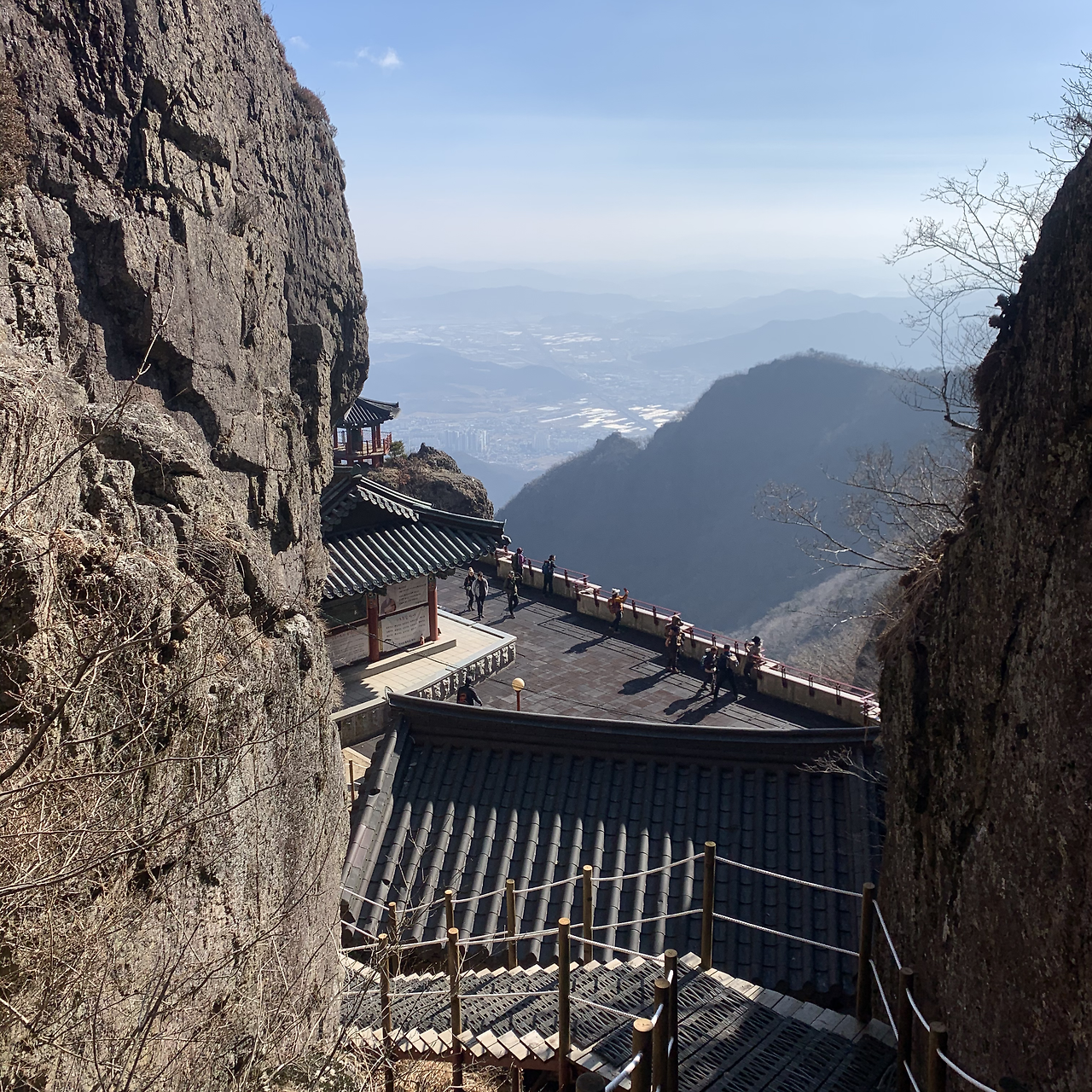 정상을 단 50m 남겨두고서, 남해 보리암을 떠올리게 하는 약사암에 도착했다. 구름 위에 떠 있는 절. 그곳에서 해우소도 들리고 절에서 무료로 제공하는 스위트아메리카노도 마시고 그리고 규암씨가 기다리고 있을 정상으로 : )